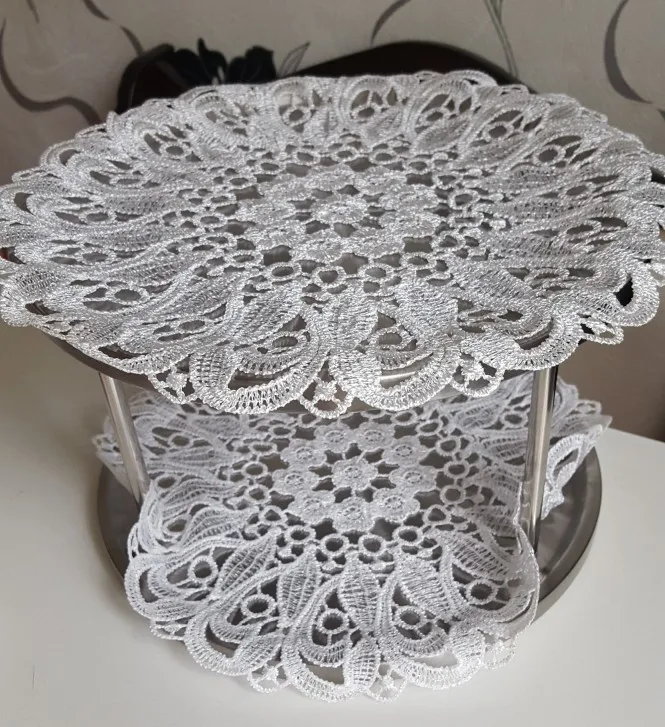 Одного сантиметра на диаметре не хватает.Выглядит красиво.Хотелось бы.чтобы лучше обрабатывался край-думаю-после стирки станут лезть нитки.