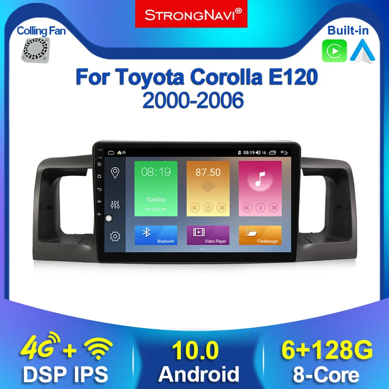 Автомагнитола 2 Din, DVD-плеер с радио и GPS-навигацией для Toyota Corolla E120 BYD F3 128-2000, Android, DSP IPS 6 + 2006G, Wi-Fi, BT