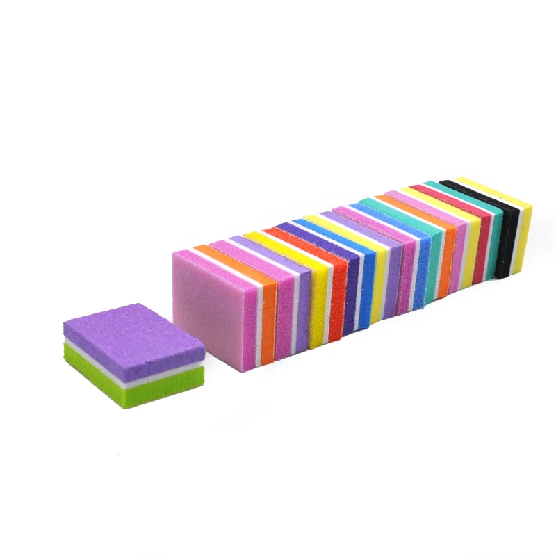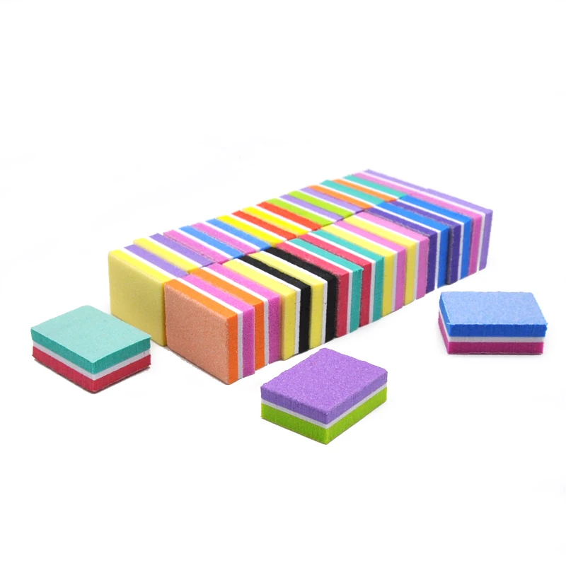 50 шт.лот, Цветные Мини губки для ногтей, двухсторонние 100180 ламы, Эмери, пилки для ногтей, салонные инструменты для маникюра