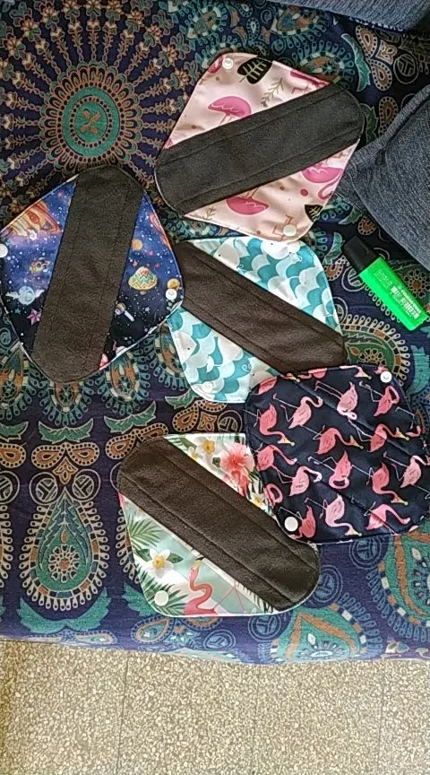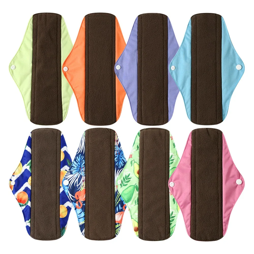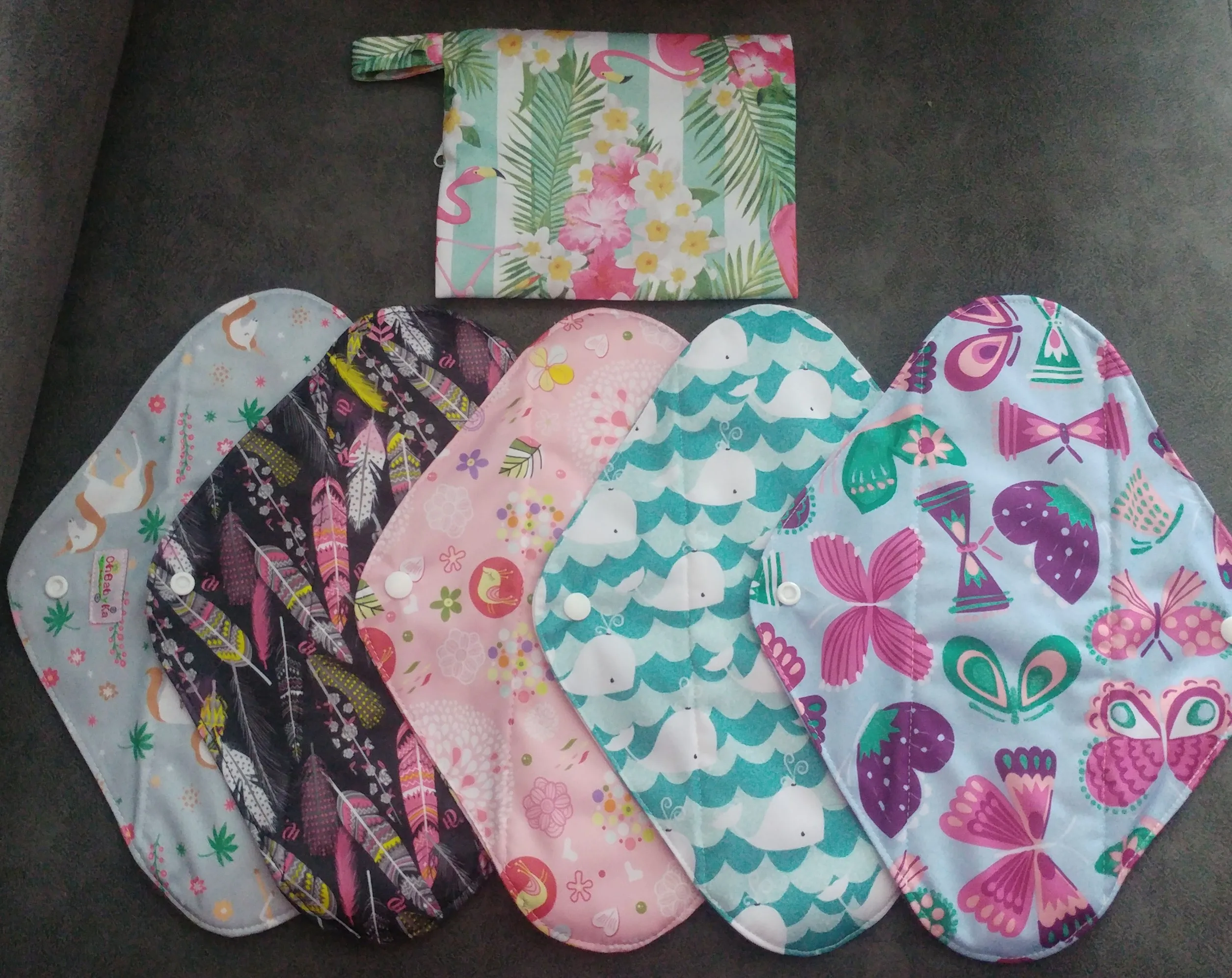 Гигиенические менструальные прокладки для женщин, 5 шт., с бесплатной водонепроницаемой сумкой, моющиеся гигиенические прокладки для женщин, только сегодня, многоразовые угольно-Бамбуковые