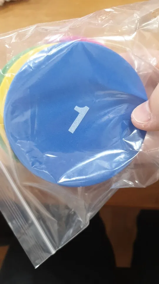 Они круглые, по одному каждого цвета на перерыв, своего рода Толстая эва резина. Это хорошо для цели, которую он имеет.