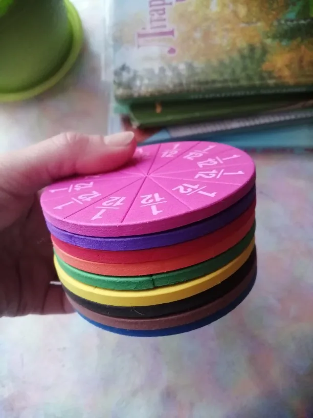 Хорошая игрушка для обучения ребёнка. Можно наглядно объяснить что такое целые числа а что такое дроби. Игрушка выполнена в разной цветовой гамме. Так играть ещё интереснее!