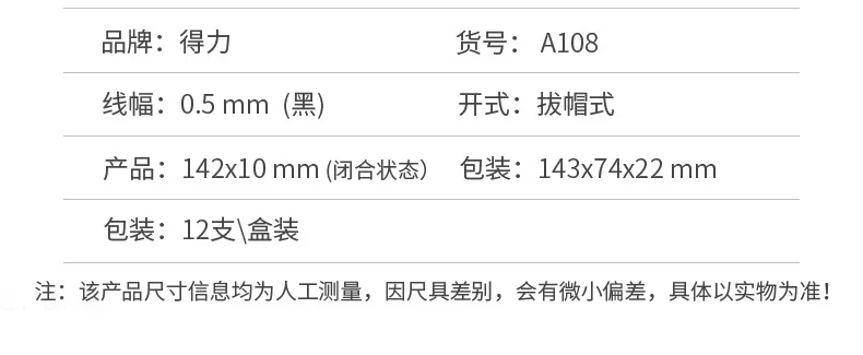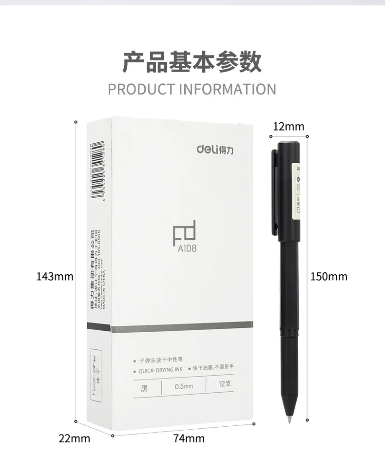 Deli 0,5 мм быстросохнущая гелевая ручка A108