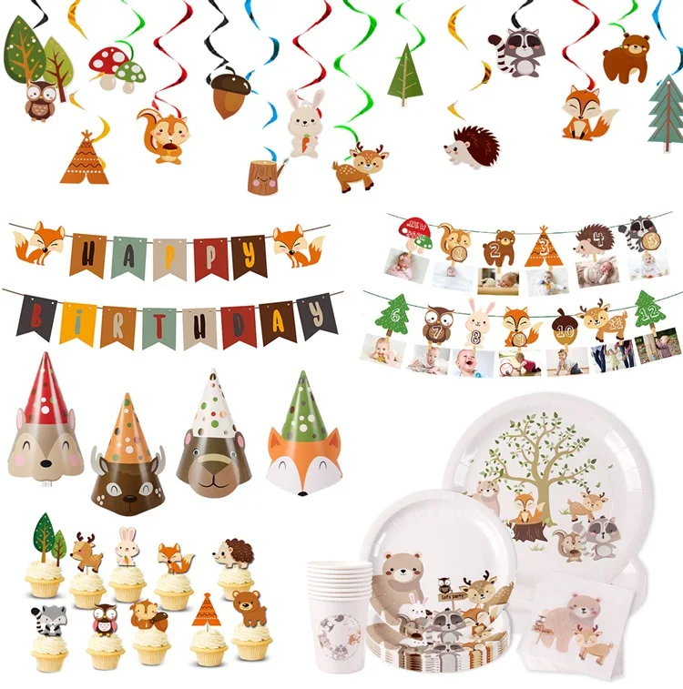 Лесных животных сафари лес DIY вечерние Декор лесной День рождения ...