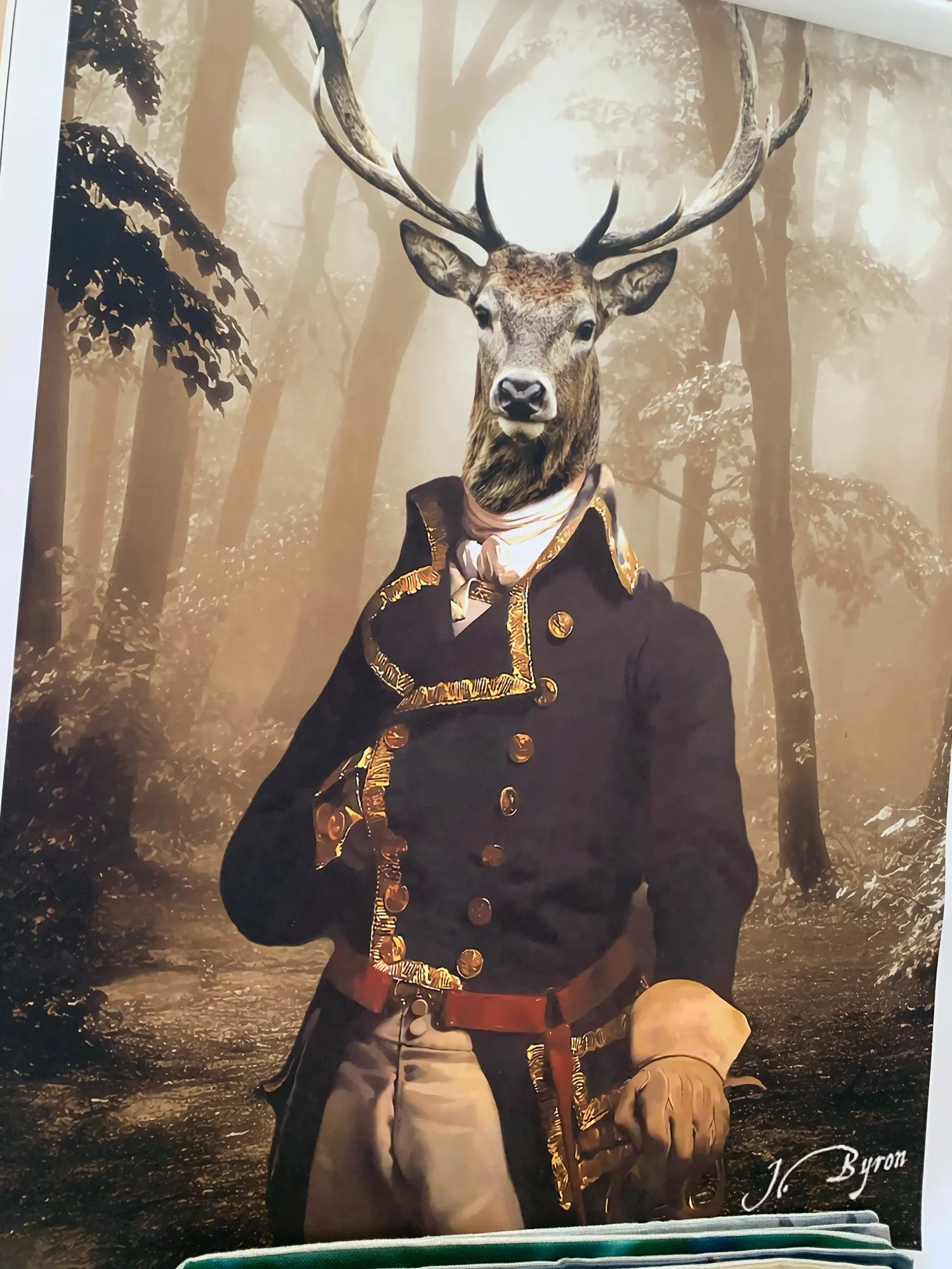 Картина на холсте с изображением оленя в туманном лесу, настенный постер и принты животных в костюме, забавная картина для украшения комнаты