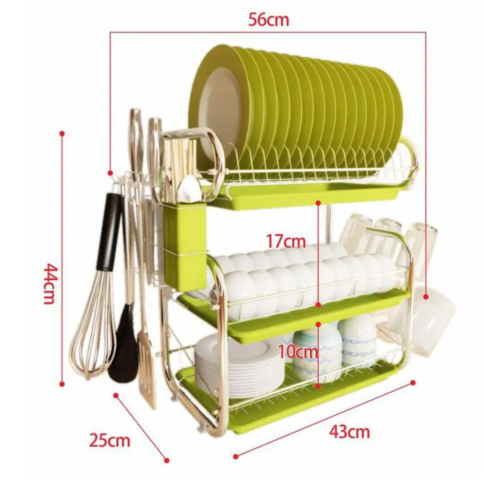 Сушилка для посуды из нержавеющей стали, 3 уровня