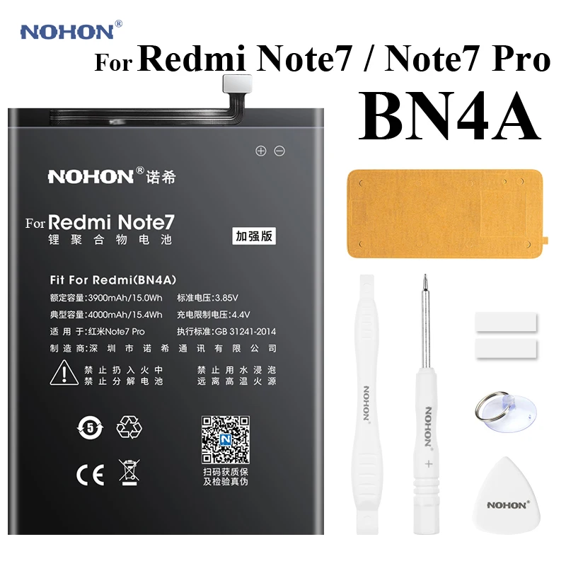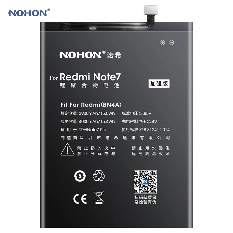 Литий-полимерный аккумулятор Nohon для Xiaomi Redmi Note 7 Pro, 7Pro, Note 7, BN4A, 3900-4000 мАч
