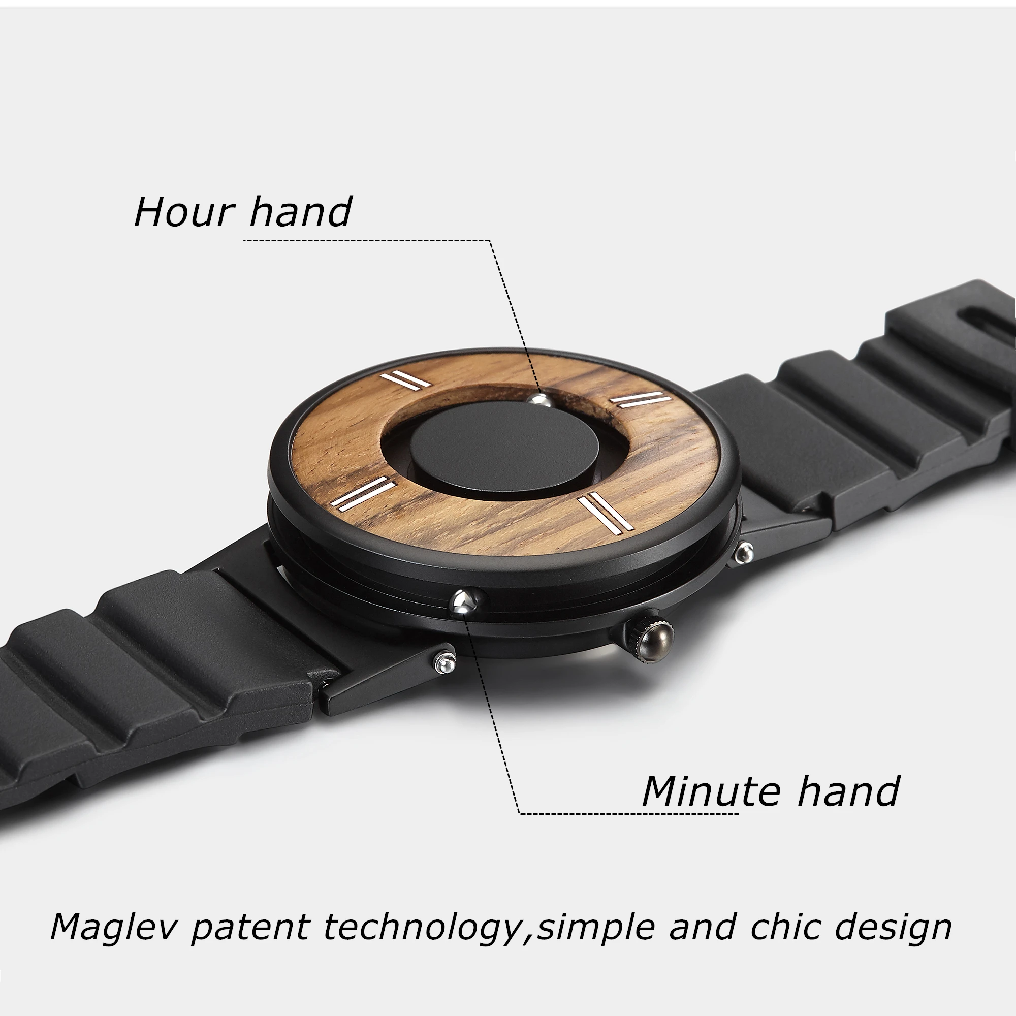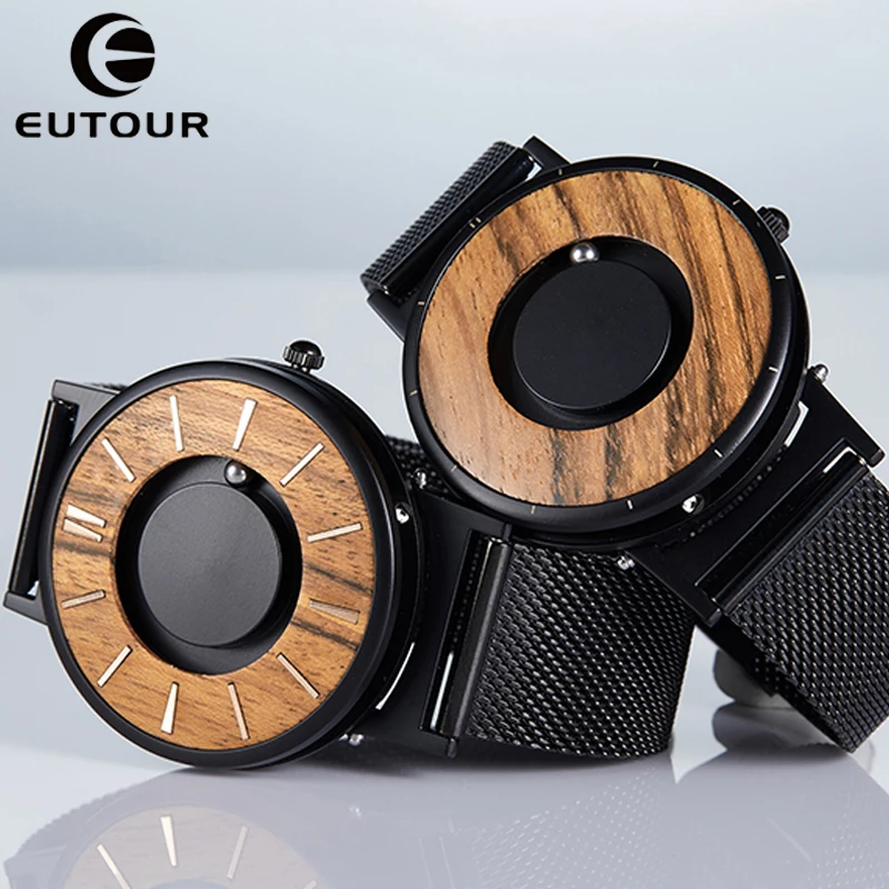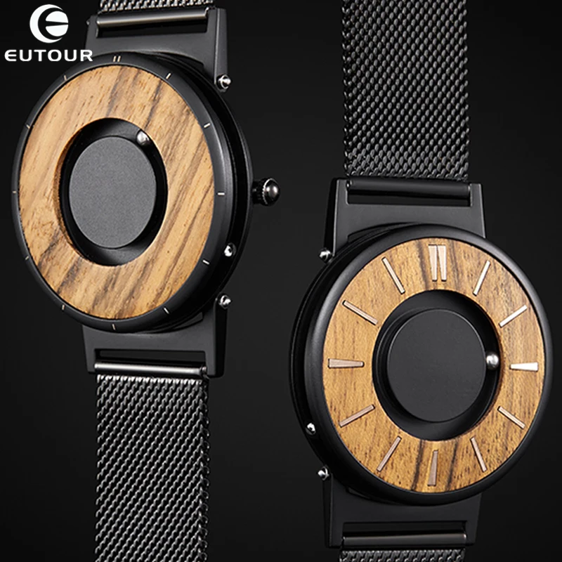 Часы EUTOUR Мужские кварцевые с деревянным циферблатом, магнитные, с металлическими бусинами, с деревянным циферблатом, креативные черные