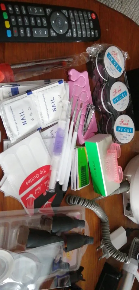 Здравствуйте!!! Была очень расстроена тем, что лампа лопнута!!!! теперь даже не знаю как быть в данной ситуации!?!? Изначально увидев заказ в целом была довольна!!! Даже не расстроилась тем, что гели немного потекли!!! Всё, что нужно для маникюра в этом наборе есть!!! (кроме жидкости для снятия липкого слоя) Ноооооо...увидев трещину на лампе - огорчилась!!! (Не знаю кто в данной ситуации виновен?!?!?! либо продавец либо при доставке придавили посылку)... Заказ пришел очень быстро!!! За 7 дней, хотя при заказе говорилось срок в 3 недели!!! Машинка для стачивания геля очень понравилась!!!))) (работает)