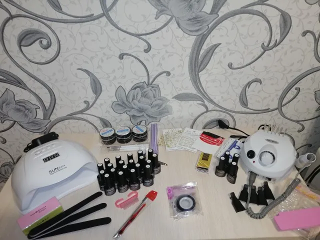 Хороший набор,для старта подойдет. Лампа хорошо сушит. Фрезер работает. Цвета плотные,база и топ жидкие. Шел почти 2 месяца