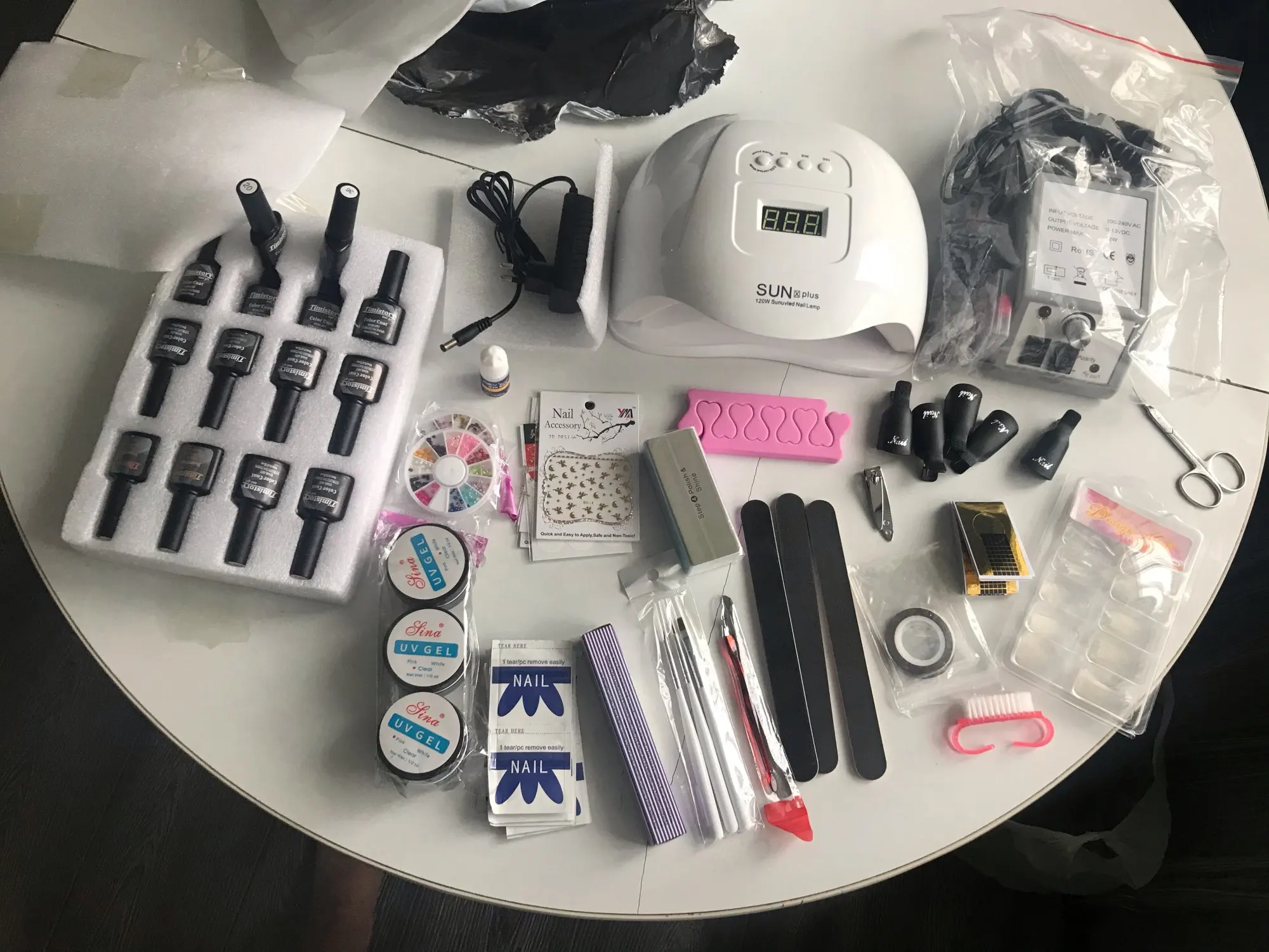 Прочитала отзывы и думала, что всё будет очень плохо работать, поломано и вообще "китайское", но по факту была удивлена: всё было в отличном состоянии, выглядит дороже своей цены, лаки хорошие, лампа сушит отлично, фрезер особо не проверяла, но работает хорошо. Заказывала 11 числа, забрала 18 с пункта сдэк. В общем, советую, всё круто.