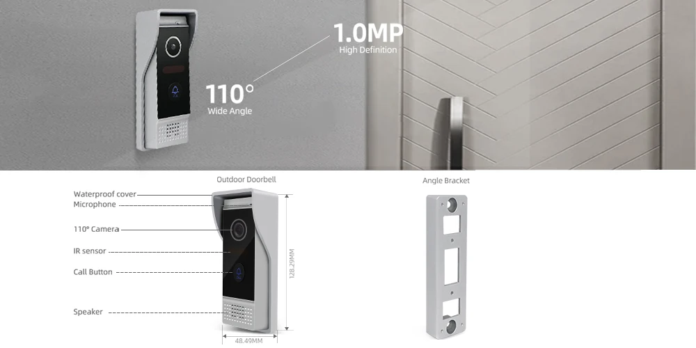 ♦Датчик камеры: 720P♦Угол обзора: 110 °♦Источник питания: поставляется с внутреннего монитора♦Материал: панель из алюминиевого сплава♦Водонепроницаемость: IP65 защита от атмосферных воздействий♦Istallation: поверхностное крепление