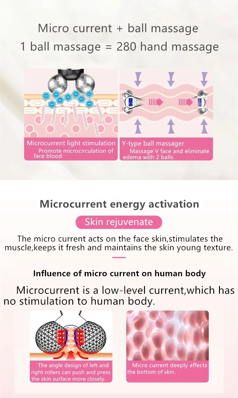 Эффективная микротоковая импульсная техника: цель на дренажные каналы и акупунктурные точки, лимфодренаж, и производит микроволны, стимулирующие глубоко в подкутис и мышцы для восстановления кожи эластичное волокно, глиальные ткани, И уменьшает мелкие морщинки.