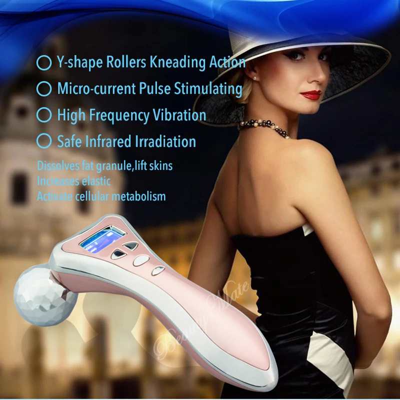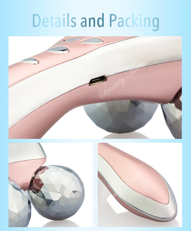 Два y-образных 360 ° массаж с вращением роликовой конструкции: адаптируется к массажу всего тела, например, лица, подбородка, шеи, груди, живота, талии, рук и ног, И обладает уникальным эффектом похудения.