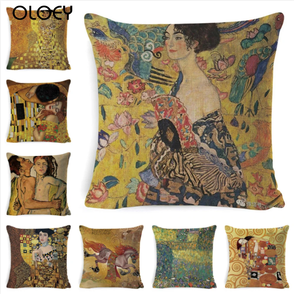 Наволочка на подушку с масляным рисунком Gustav Klimt, наволочка с золотым узором, декоративная наволочка из хлопка и льна для дома 45*45 см