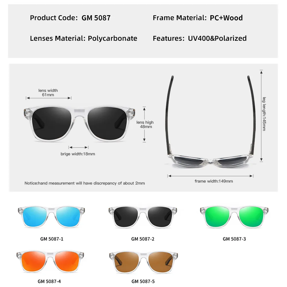 GM деревянные солнцезащитные очки ручной работы ПК оправа с деревян...