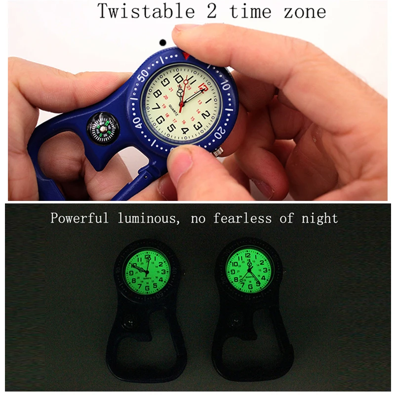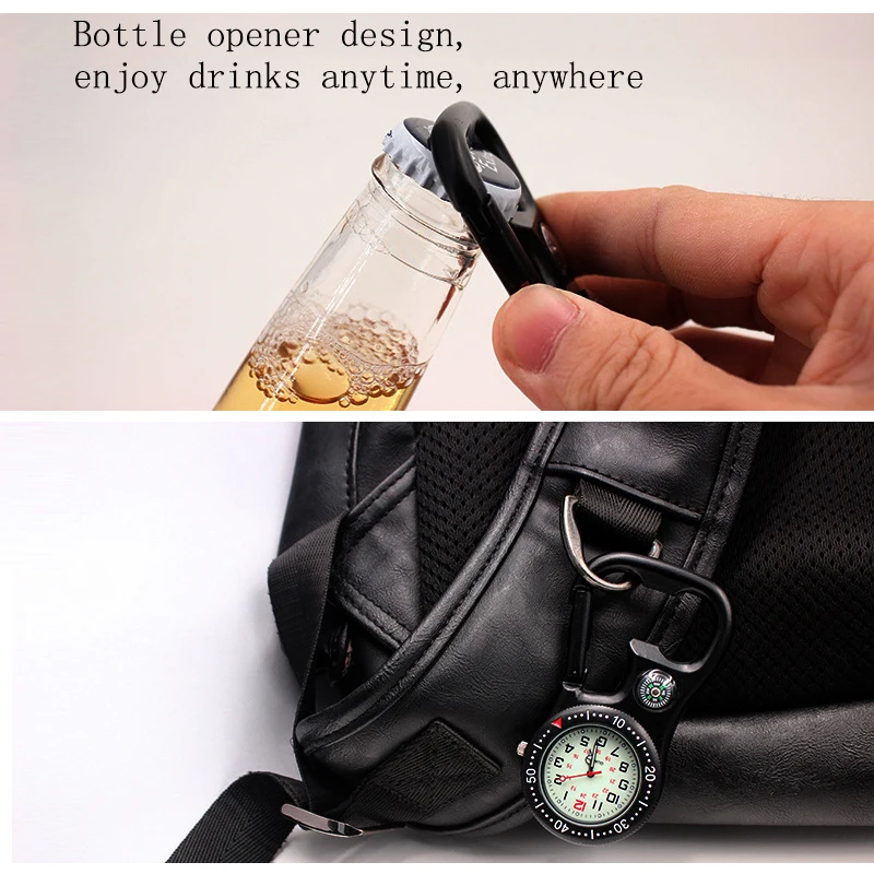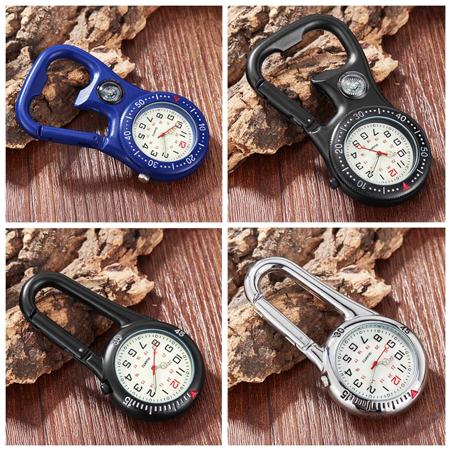Карабин с открывалкой для бутылок, часы с зажимом для рюкзака, мужские карманные часы с компасом, светящийся циферблат для врачей и медсестер, часы для спорта на открытом воздухе и альпинизма
