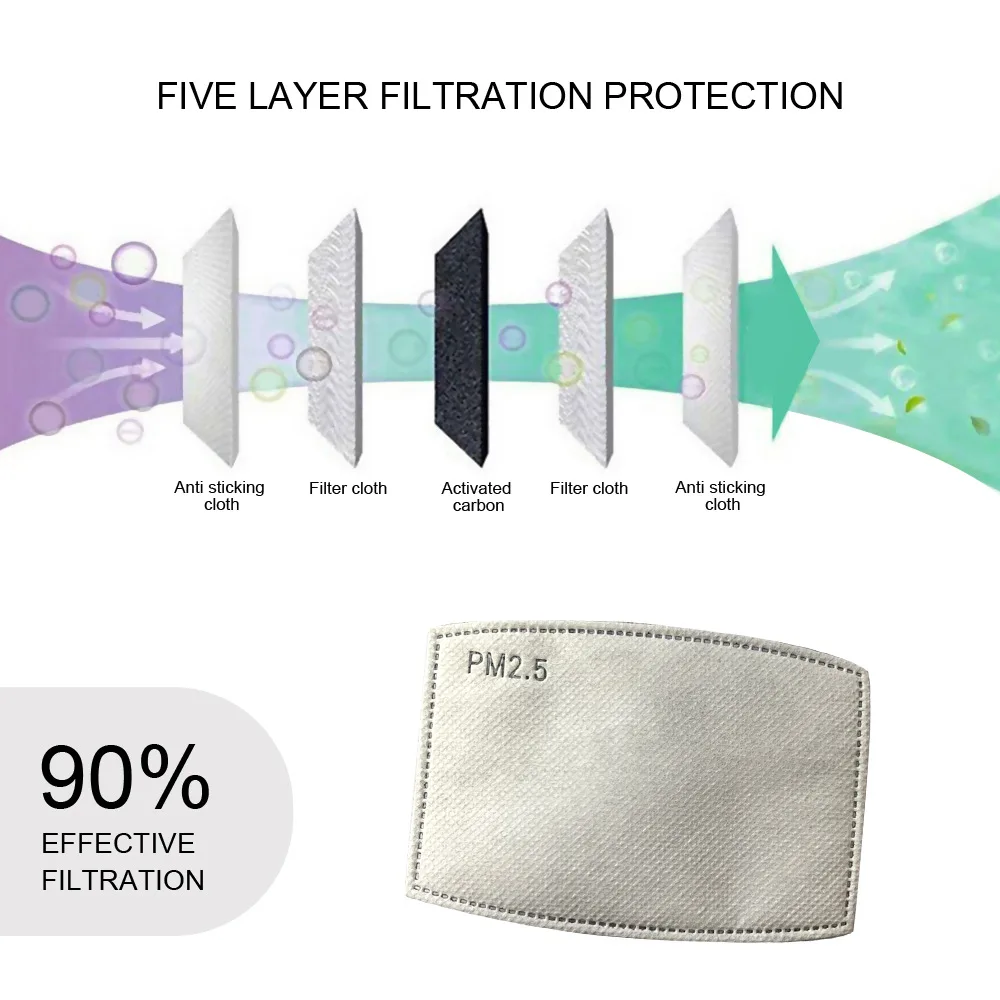 Дропшиппинг маска для лица PM2.5 Анти-пыль маска для лица 5 Слои воздушный фильтр хлопок многоразовая маска унисекс для взрослых и детей защитные маски