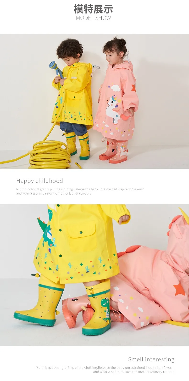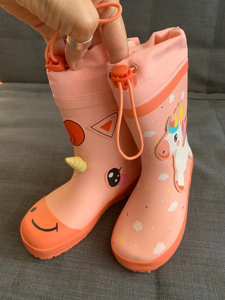 Детские резиновые сапоги с единорогом, водонепроницаемая обувь для мальчиков и девочек, модные детские резиновые сапоги с мультяшным принтом, нескользящая детская Водная обувь
