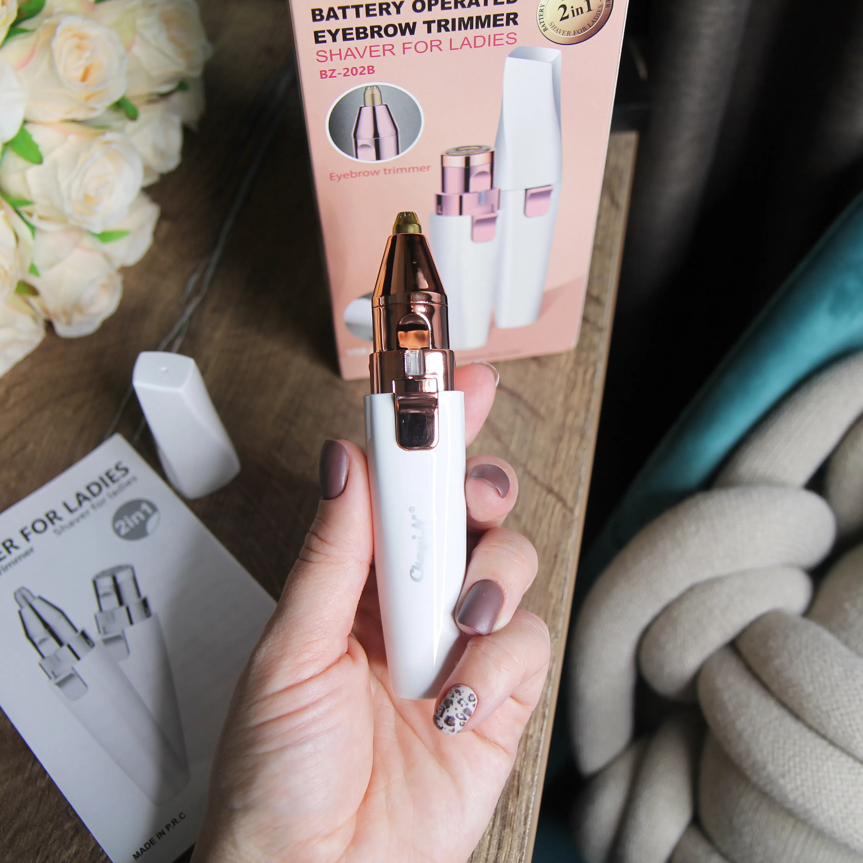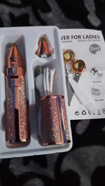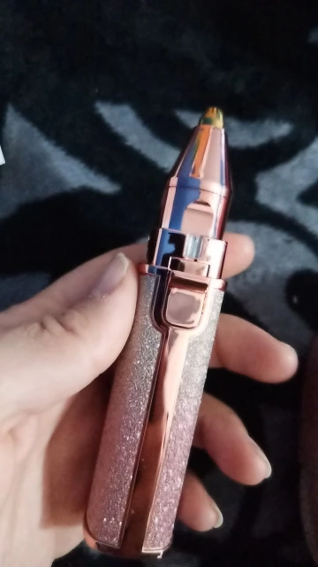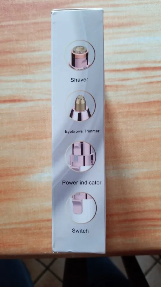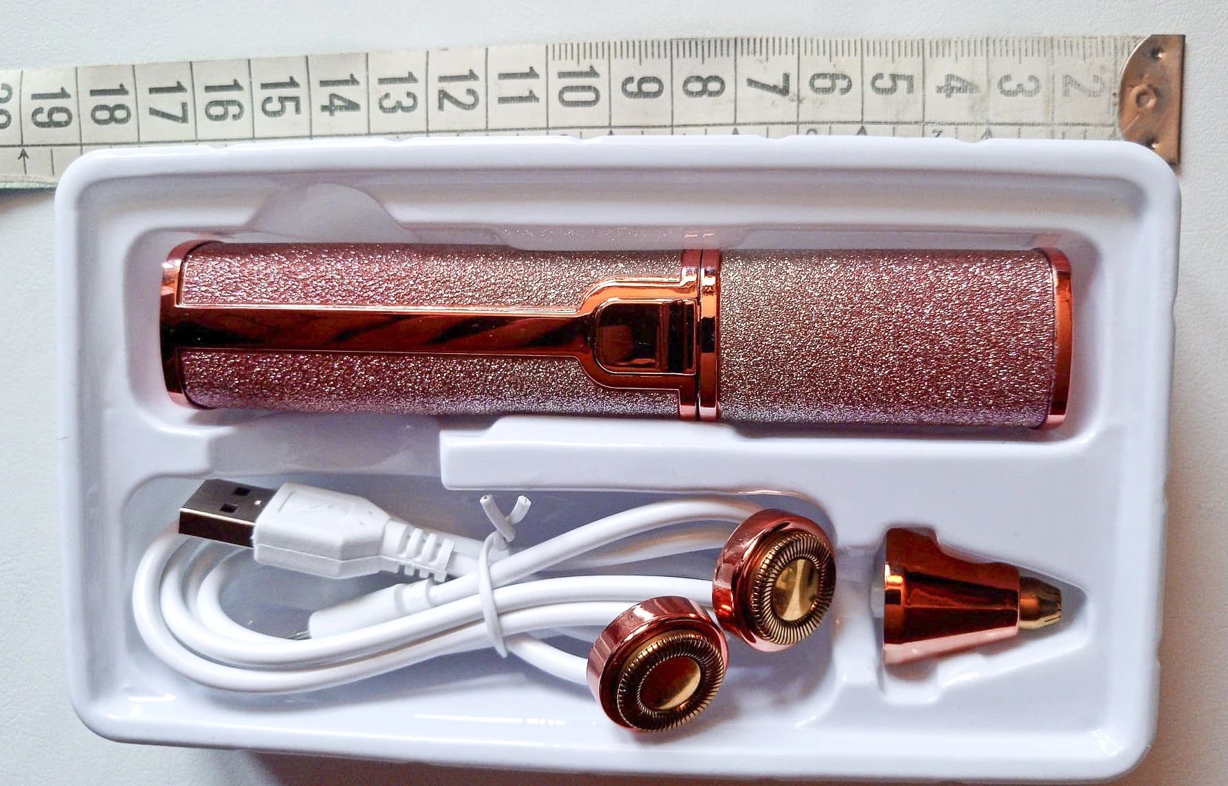 отличный триммер.Приходит в фирменной коробке. В комплекте зарядное, насадки 2 штуки, инструкция, щетка для чистки. Оформление красивое, приятное и удобное; пластик качественный и никакого запаха не было. Дизайн эпилятора элегантен и внешне выглядит как женская помада, его запросто можно взять собой в путешествие.Устройство мгновенно удаляет волосы на лице, носовые волосы и волосы на теле - без боли. Также моно пользоваться им в зоне бикини, под мышками и в других местах, где угодно. Триммер работает от аккумулятора, что очень удобно. Имеет одну кнопку управления: вкл/выкл, при включенном состоянии горит индикатор белым цветом. Триммер отличный