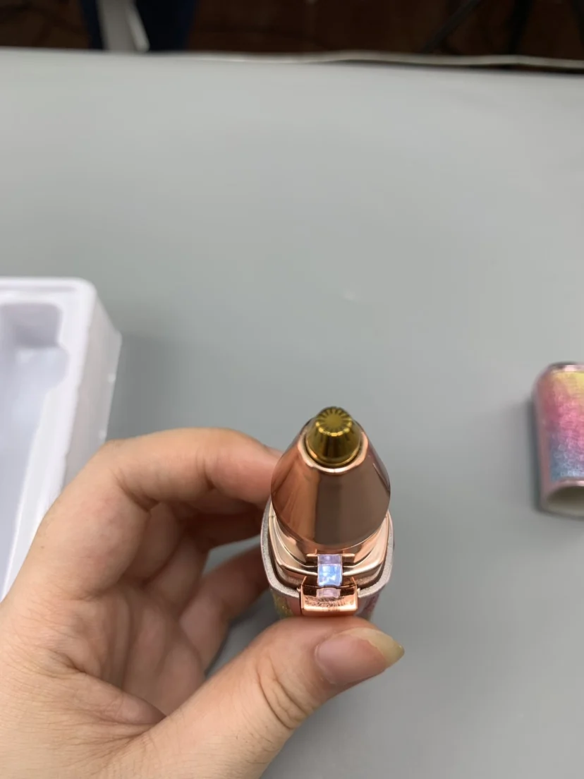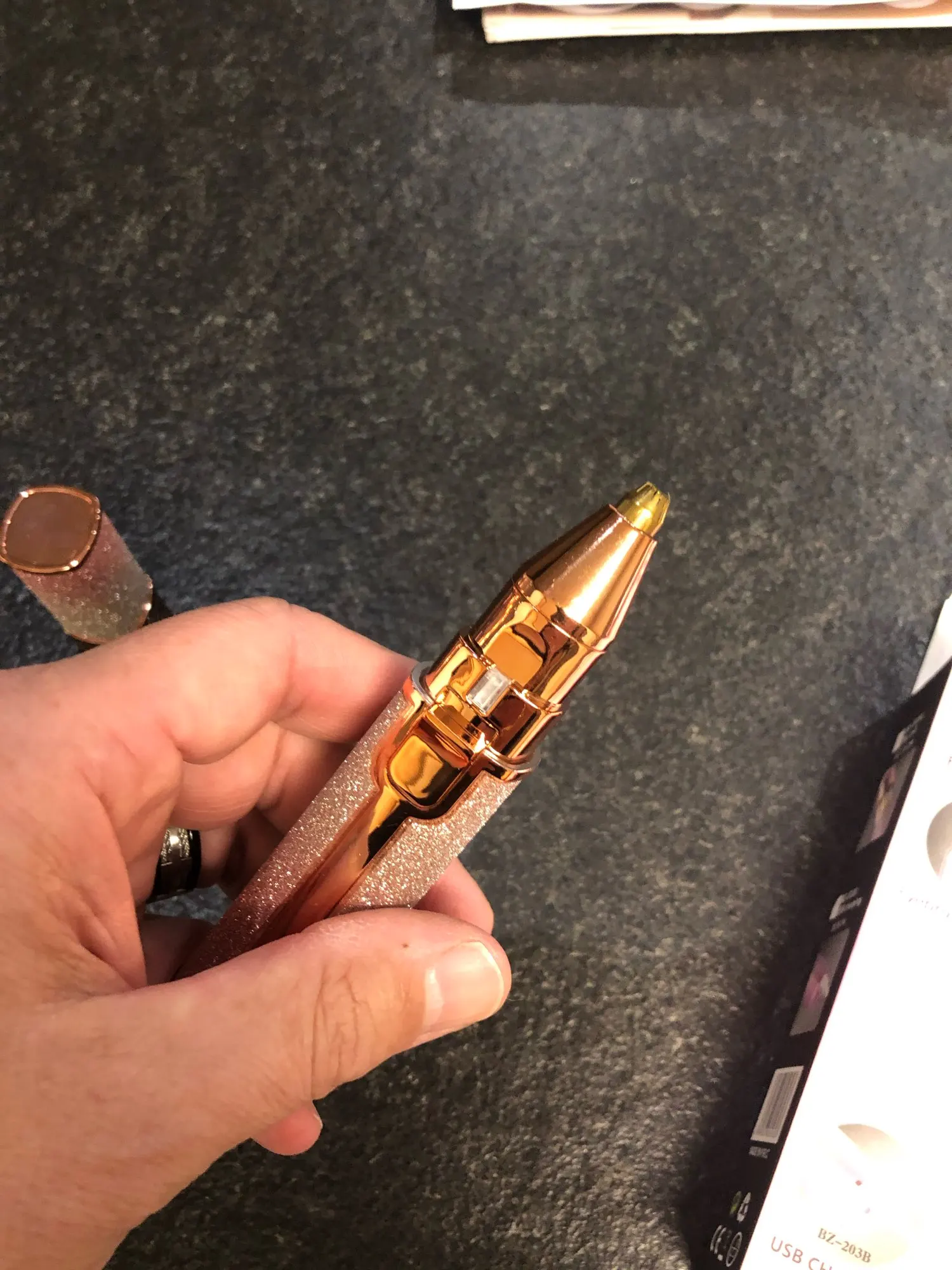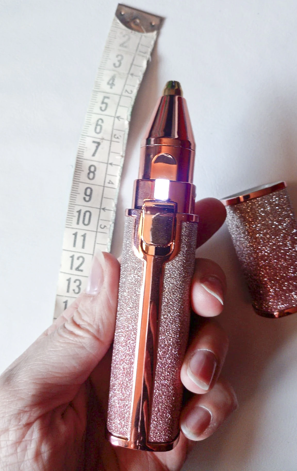 отличный триммер.Приходит в фирменной коробке. В комплекте зарядное, насадки 2 штуки, инструкция, щетка для чистки. Оформление красивое, приятное и удобное; пластик качественный и никакого запаха не было. Дизайн эпилятора элегантен и внешне выглядит как женская помада, его запросто можно взять собой в путешествие.Устройство мгновенно удаляет волосы на лице, носовые волосы и волосы на теле - без боли. Также моно пользоваться им в зоне бикини, под мышками и в других местах, где угодно. Триммер работает от аккумулятора, что очень удобно. Имеет одну кнопку управления: вкл/выкл, при включенном состоянии горит индикатор белым цветом. Триммер отличный