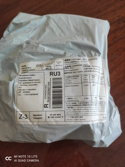 Страна: RU Color: 2in1 hydrogel lens Ships From: China Material: Mi Note10 Lite Bundle: Hydrogel film Доставка: Saver Shipping 27.01.2021