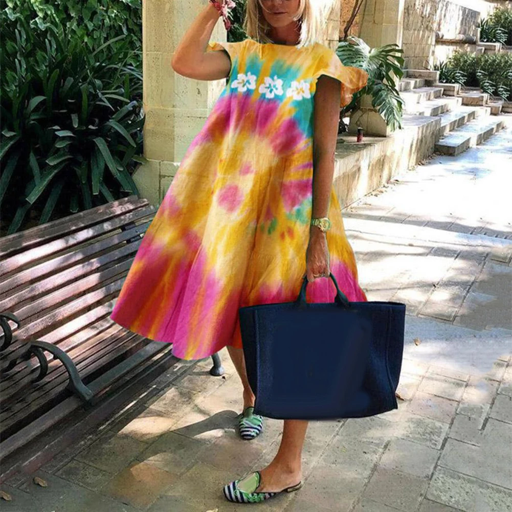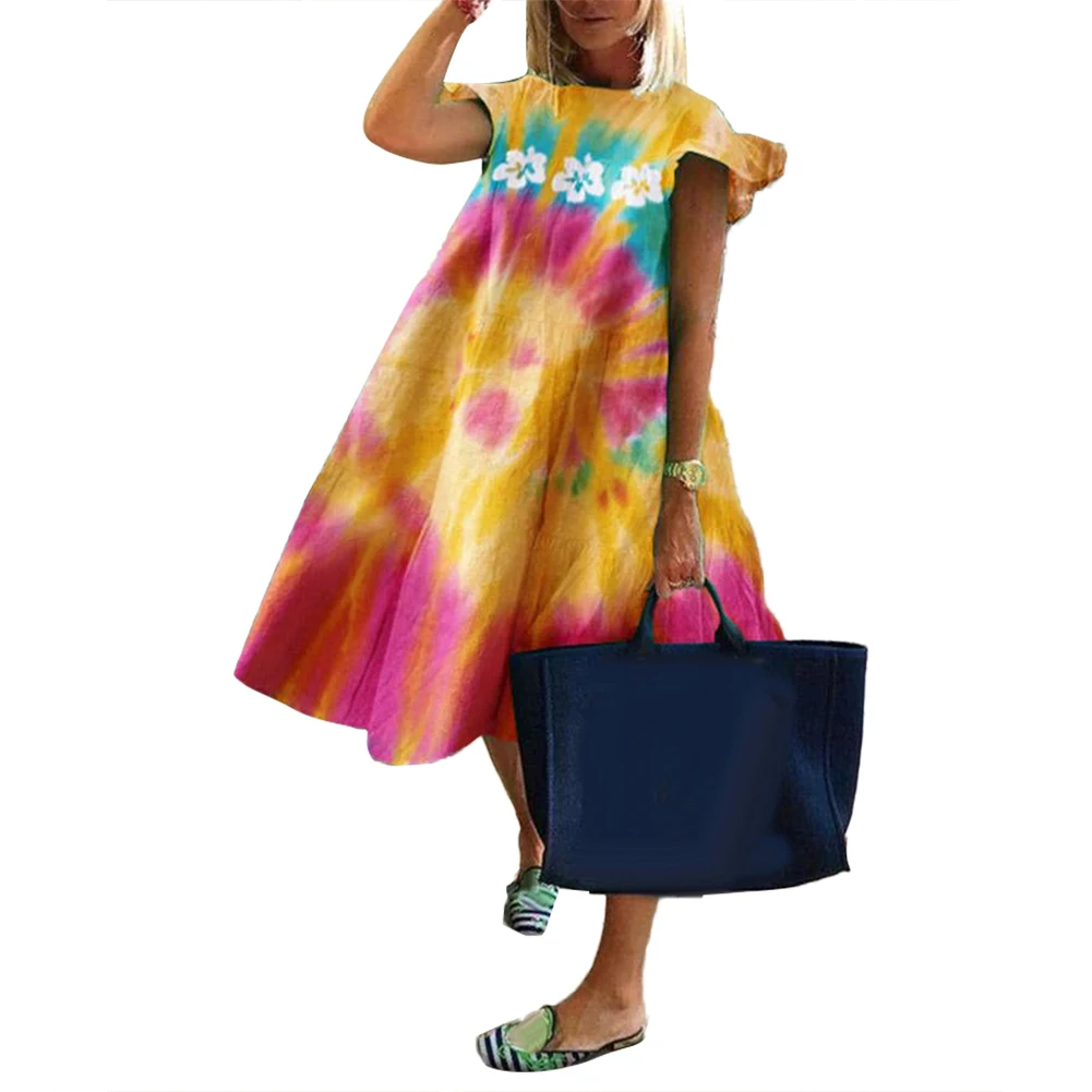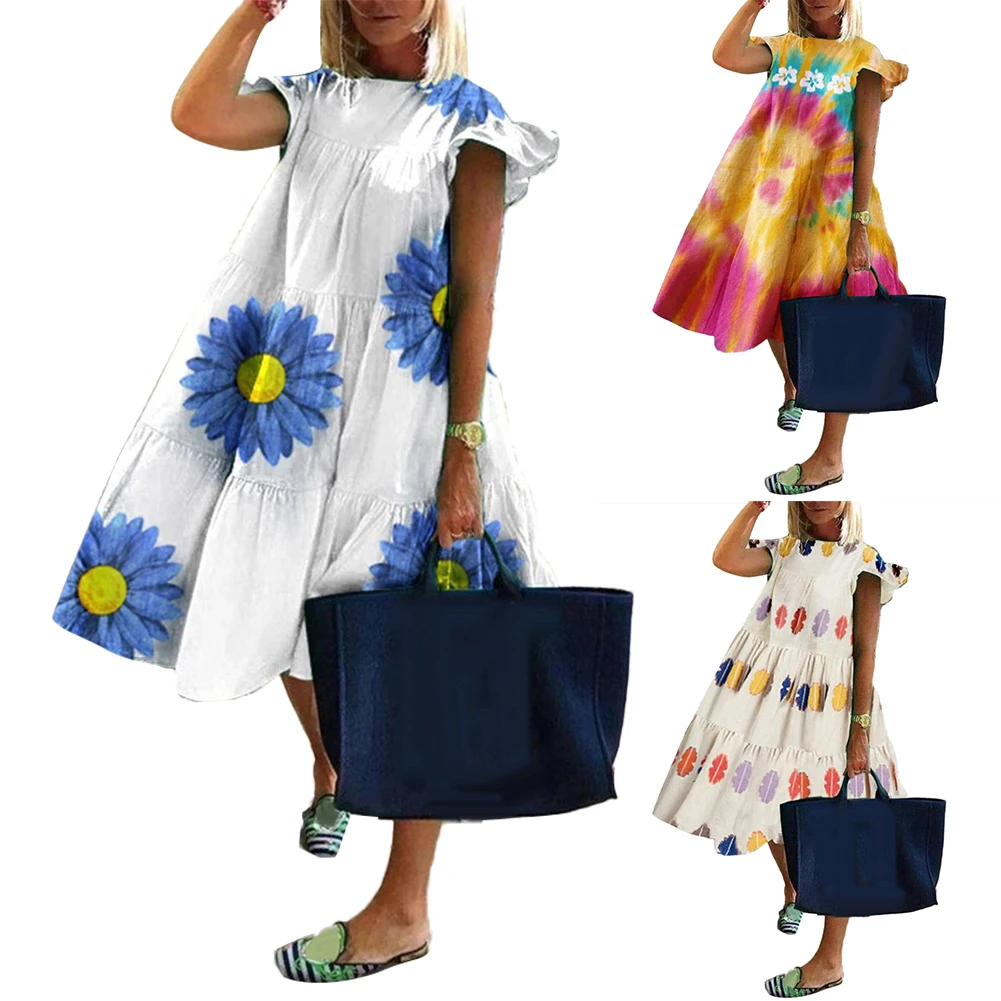 Женское Повседневное платье-миди, с круглым вырезом и коротким рукавом, с принтом маргариты, с большим подолом, летняя одежда размера xxl, 2021