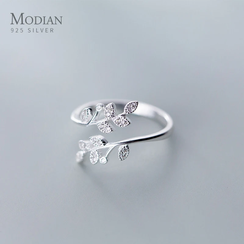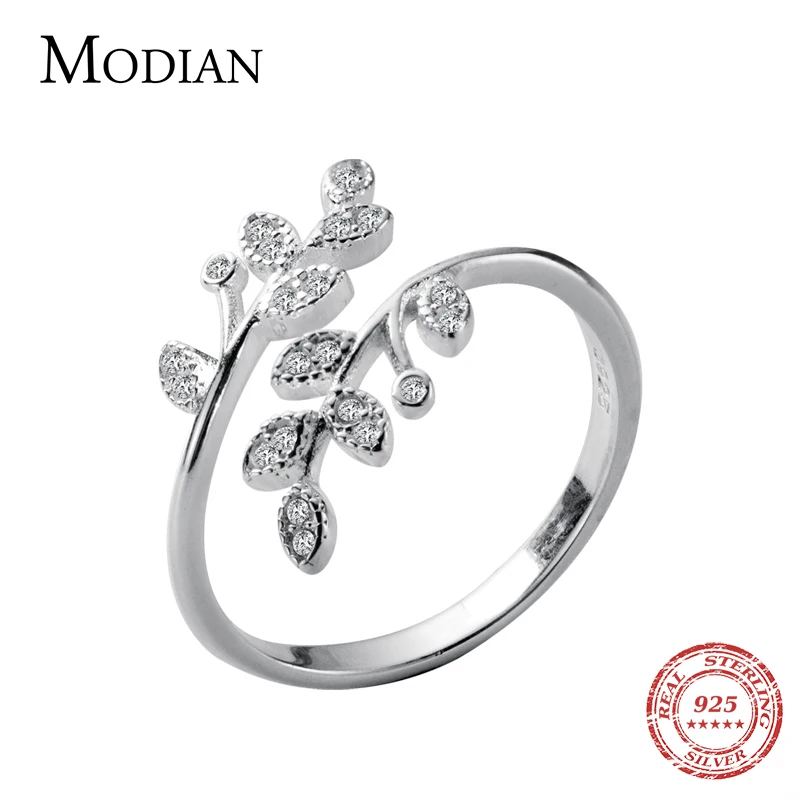 Modian сверкающий Циркон ветка листья стерлингового серебра 925 кольцо для Для женщин бесплатная Размеры кольцо Роскошные Обручение, подарок, изящное ювелирное изделие