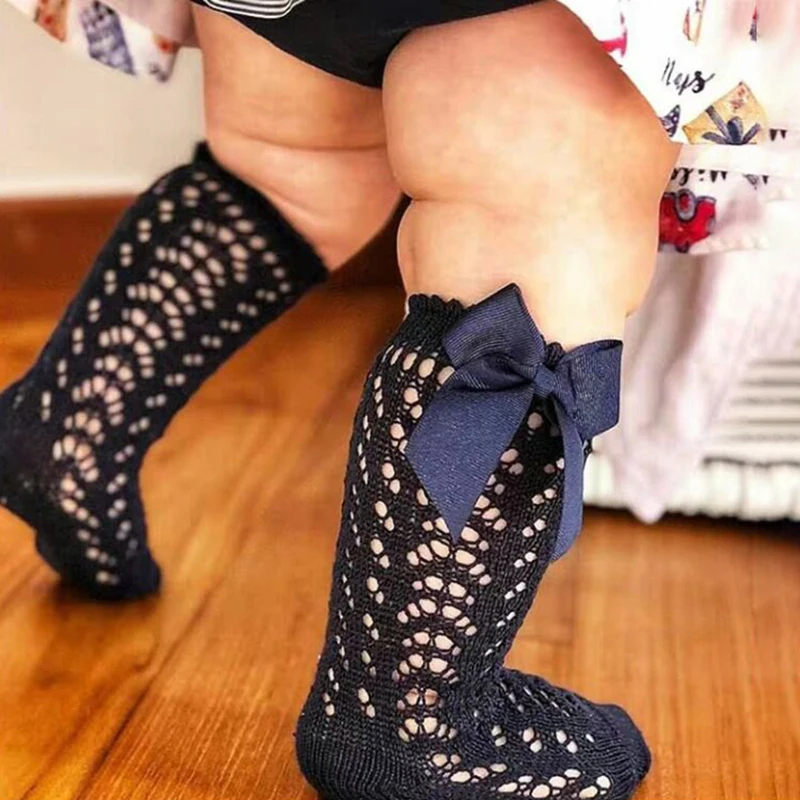 Новинка, женские гольфы с бантом, носки-трубы в Королевском Стиле для малышей, Длинные Детские носки с вырезами для младенцев