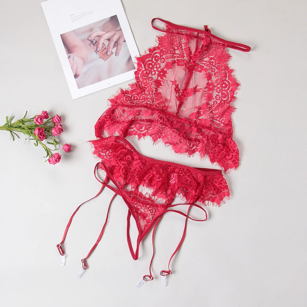 Новое нижнее белье сексуальный горячий Эротический бюстгальтер + стринги комплект с подвязками сексуальная пижама экзотическое Нижнее Белье Порно секс костюмы прозрачные кружева Комбинация