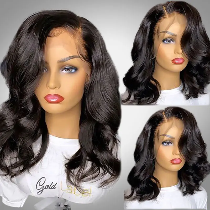 Парик из натуральных человеческих волос с Короткими Кружевными волосами, 13x4