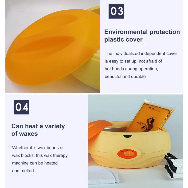 ① Положите соответствующее количество восковых кубов (не забудьте взять тепловую защиту и не класть воду)② Воск плавится полностью в течение 12 минут, и вы можете добавить эфирное масло для увеличения смазки.③ После того, как воск полностью плавится, отключите источник питания и вставьте изоляционную панель, чтобы ваши руки не были сожжены в нижней части горшка.④ Попробуйте температуру, медленно положите руку внутрь, Замочите около 5 секунд и повторите 5 раз.⑤ Надевайте одноразовые перчатки (легко снимаются) и хлопковые перчатки (для теплоизоляции, лучшего поглощения)Wax воск может быть очищен примерно через 10 минут, и эффект очевиден после сравнения. (Вы можете положить воск обратно в кастрюлю и использовать его повторно.)