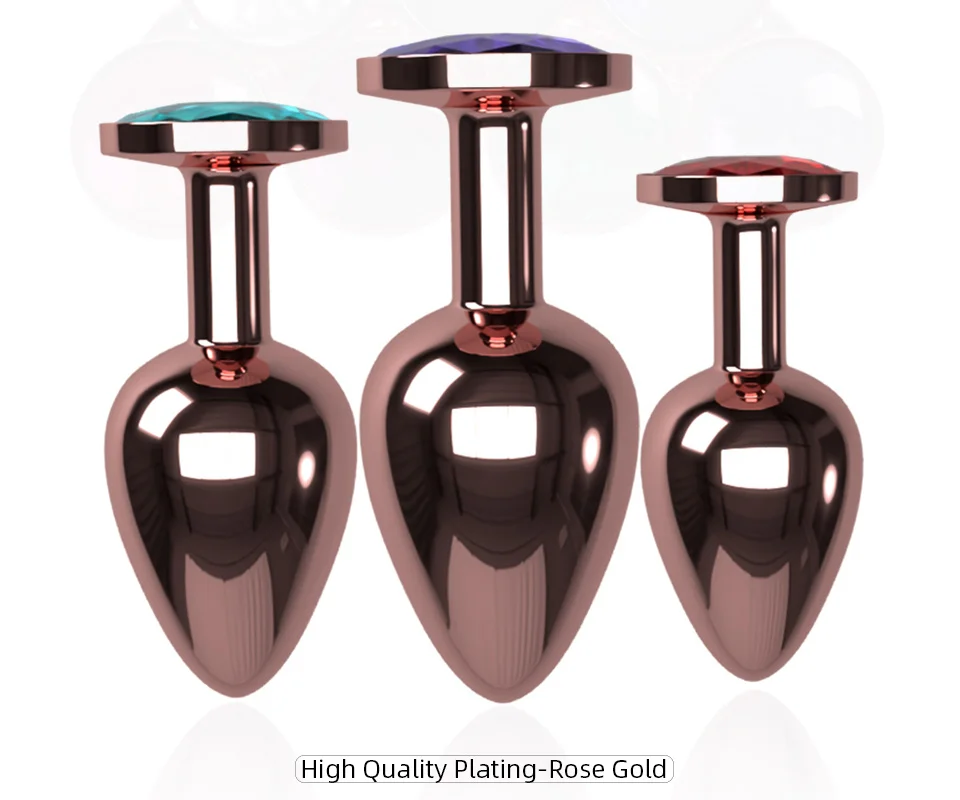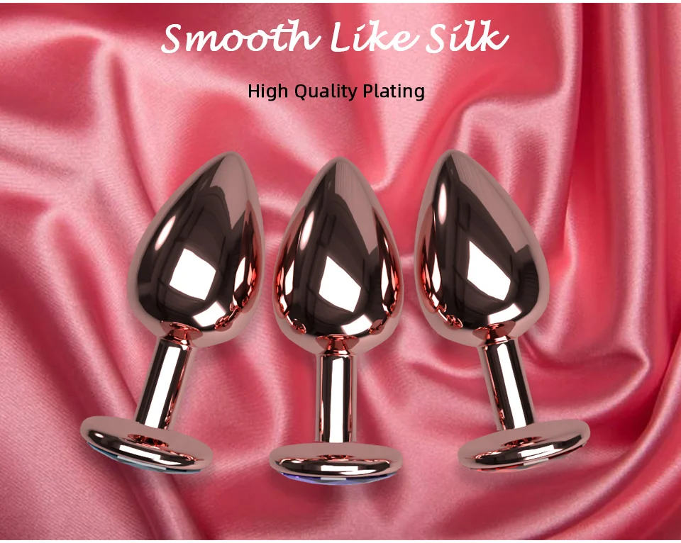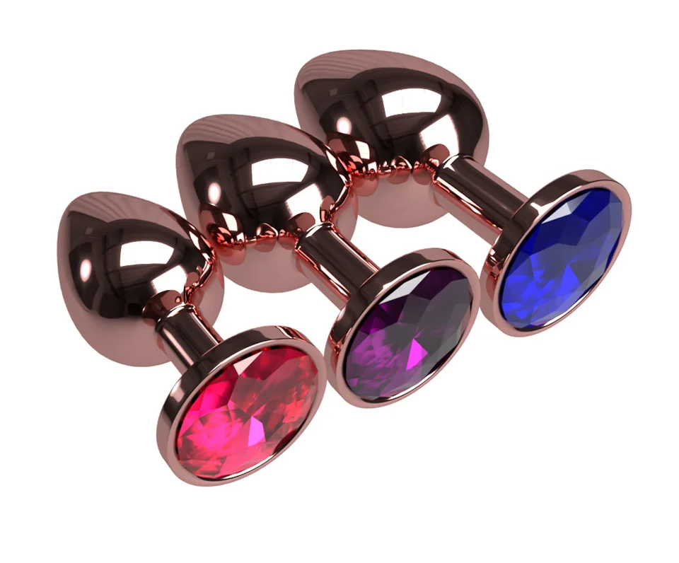Анальная пробка, 3 шт.лот, гладкая металлическая, с покрытием из розового золота, с кристаллами, эротическая игрушка, анальная пробка для взрослых, товар для женщин, мужчин, геев