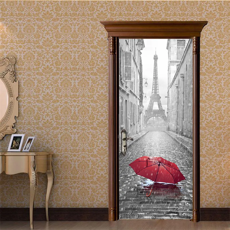 2 шт./компл. Парижская башня, красный зонтик, сделай сам, дверь, настенные наклейки, домашний декор, гостиная, спальня, художественная роспись, водонепроницаемая декоративная живопись