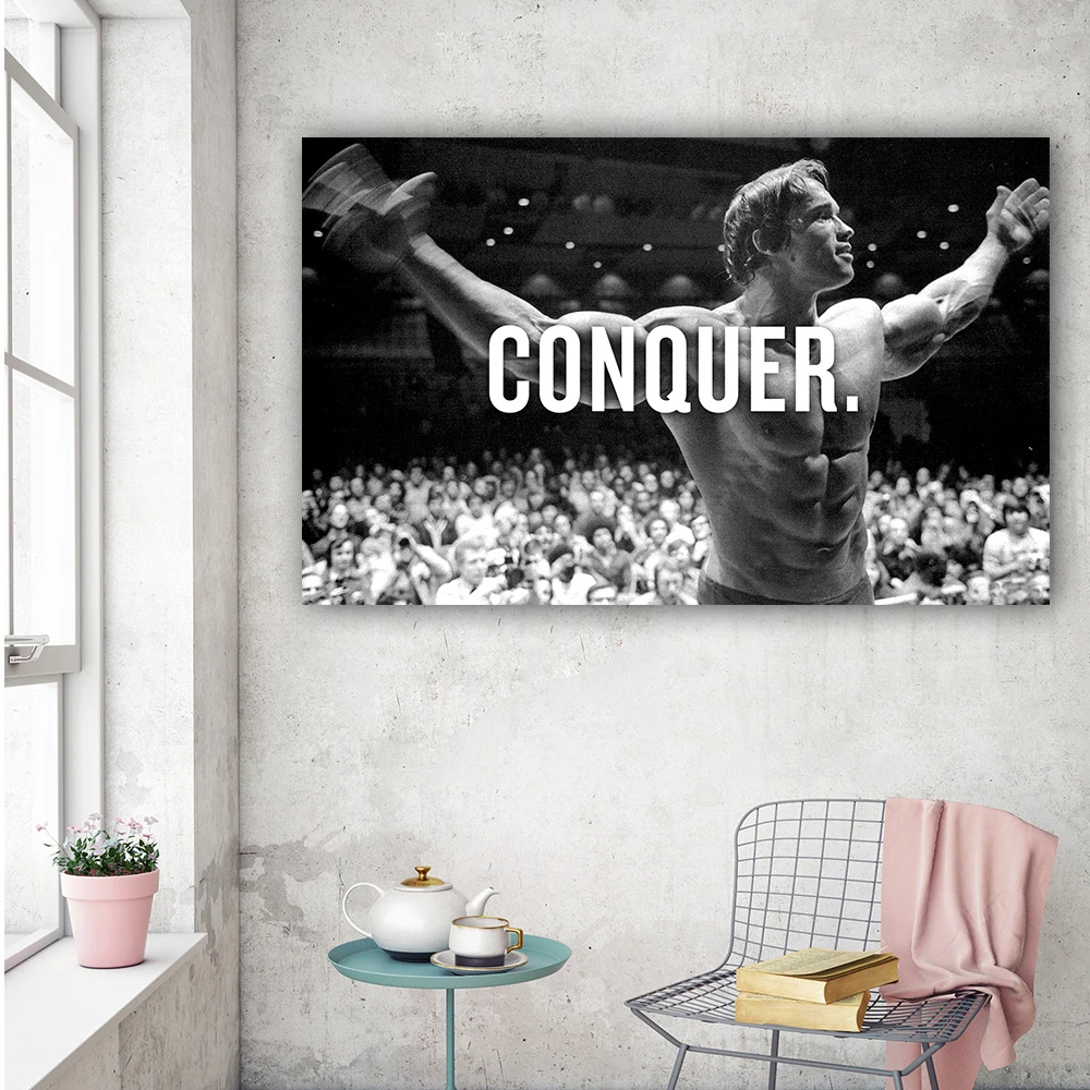 Завоевывает мотивационные цитаты Художественная Картина на холсте Арнольд Шварценеггер, бодибилдинг плакат Современная Hd Печать Настенная картина для комнаты