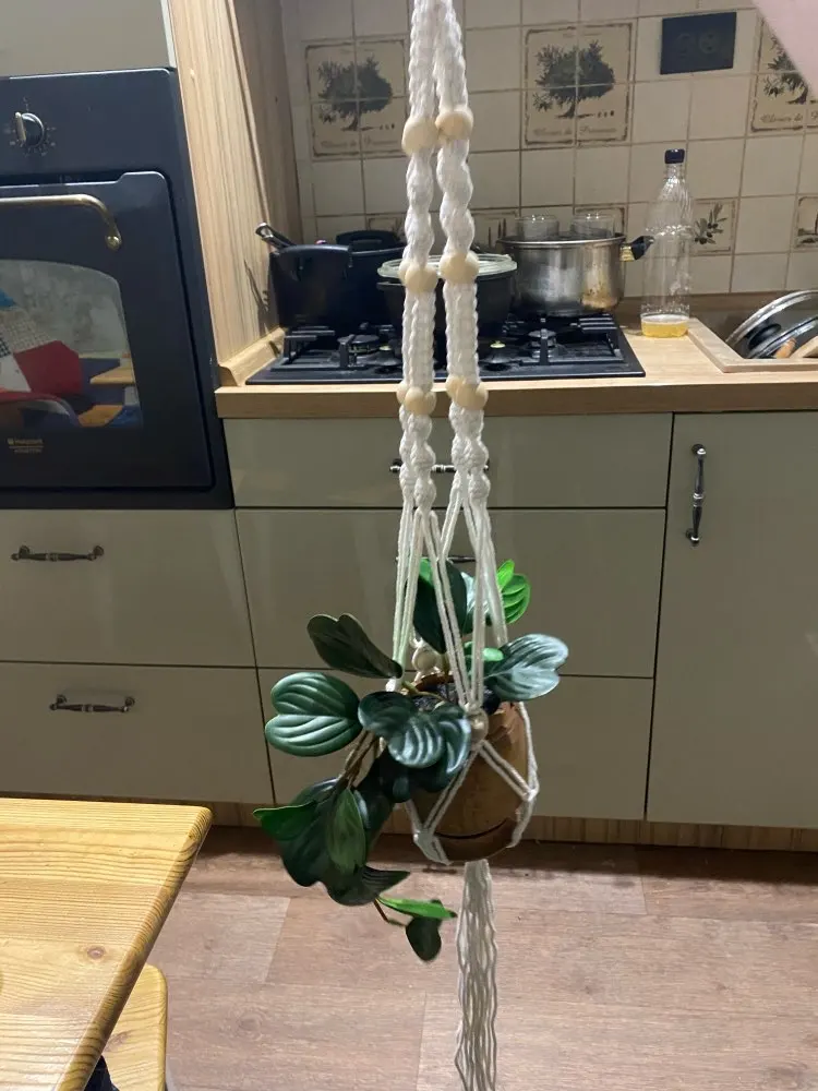 заказала три кашпо, все из разных нитей, но по качеству неплохо. изготовлены из х/б нитей. есть неприятный кислый запах, но не сильный. и мое мнение, дорого для такого простого исполнения.одно переделала, большой горшок не влезал