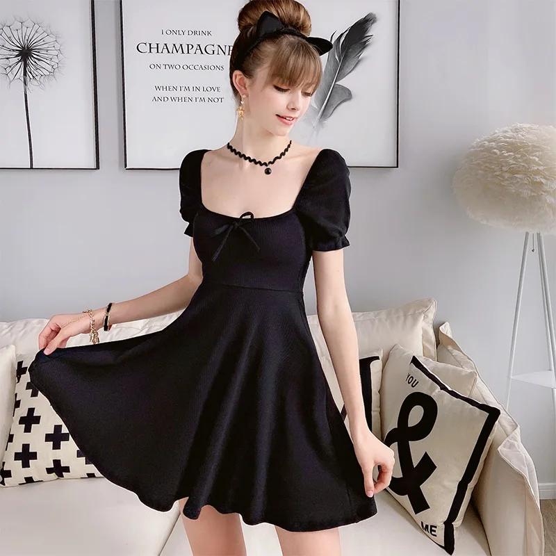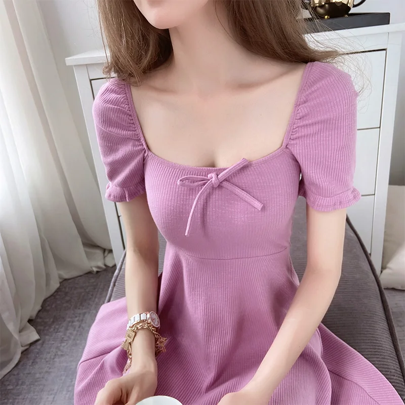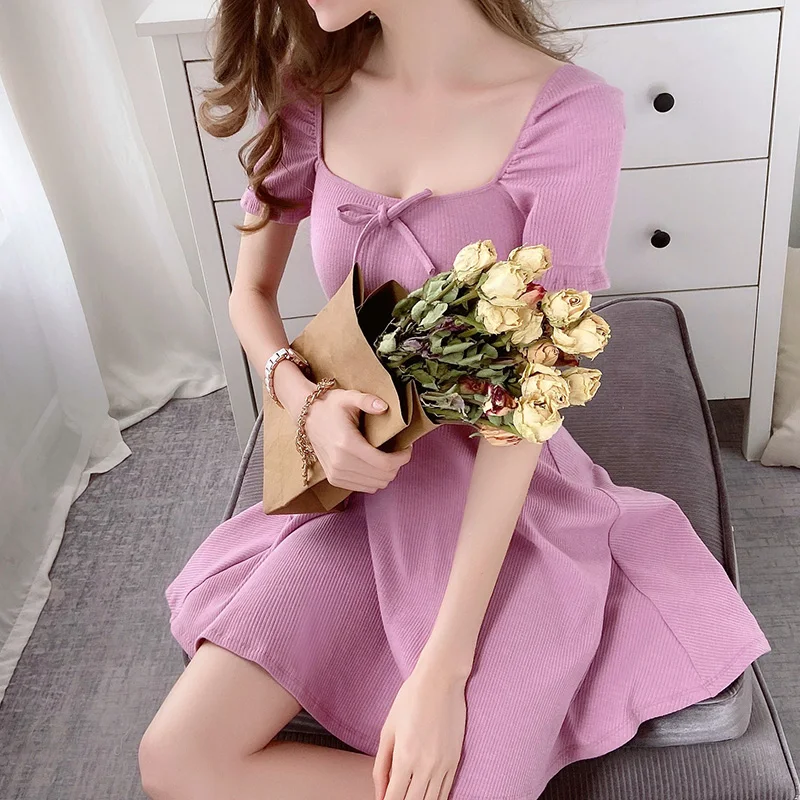 Элегантное однотонное платье Dabuwawa, женское приталенное французское стильное милое платье с квадратным вырезом и коротким рукавом, DO1BDR051