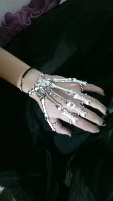Браслет на руку в стиле панк череп готического скелета, кольцо на палец, ювелирный подарокХарактеристики:Регулируемый браслет подходит большинству людей для ношения.Браслет изготовлен из премиального сплава, благодаря чему не выцветает и не ржавеет.Браслет скелет полон стильного панк и готика. Это идеальный аксессуар для повседневной носки или Хэллоуина, Рождества, Дня благодарения Вечерние и т. д.Тип: браслет скелетМатериал: сплавОсобенности: регулируемый, браслет скелет, вечерние чный аксессуарНормальный тип: длина запястья: 11,6 см/4,57 "(прибл.)Тип удлинения: длина запястья: 17,4 см/6,85 "(прибл.)Примечания:Из-за разницы в освещении и настройках экрана цвет товара может сильно отличаться от изображений.Замеры сделаны вручную, поэтому возможны незначительные отклонения в размерах.Посылка входит:1 браслет со скелетом