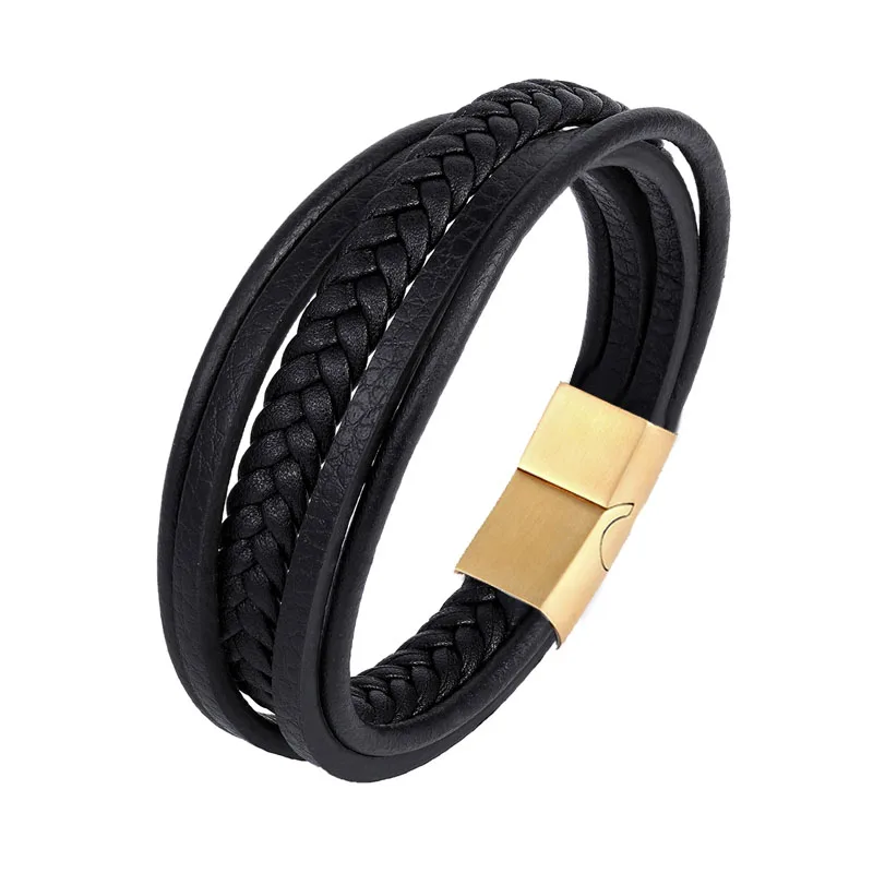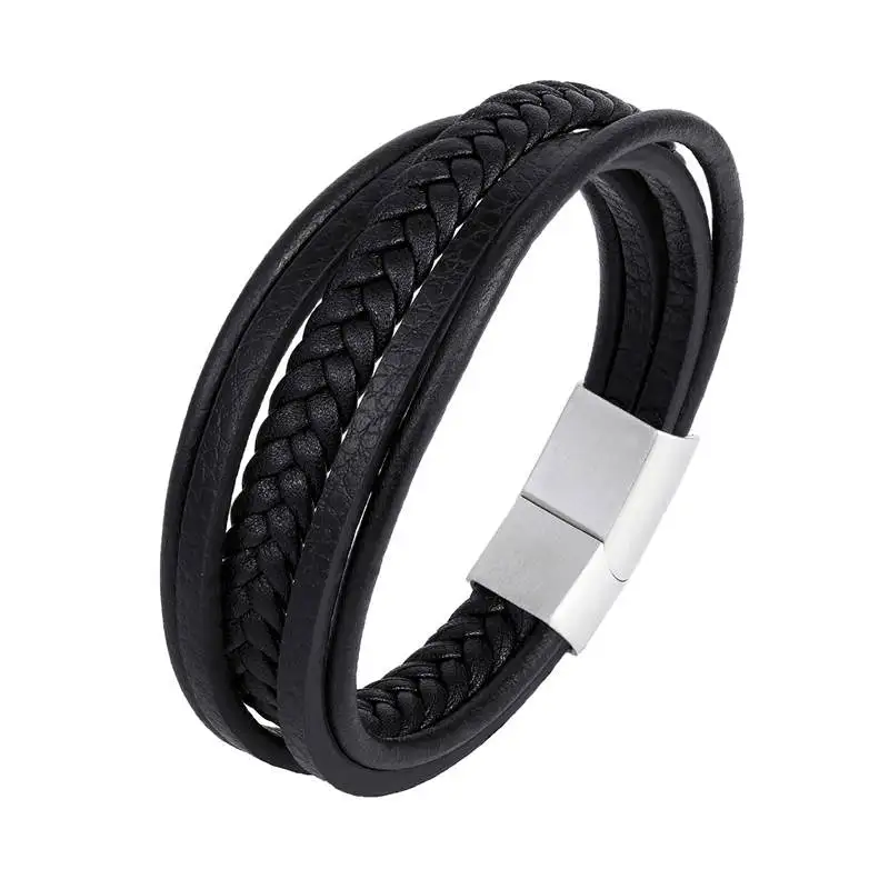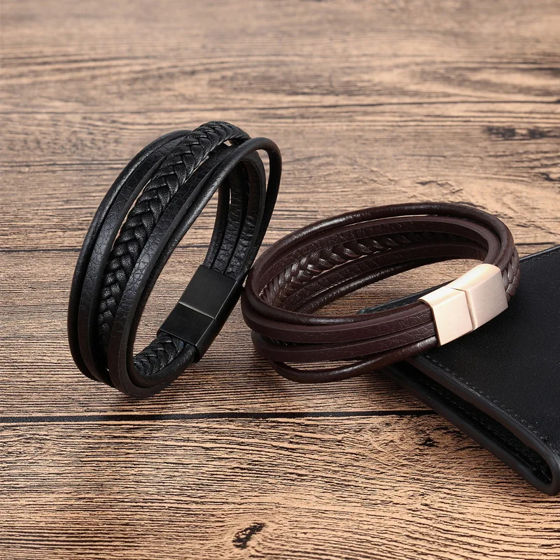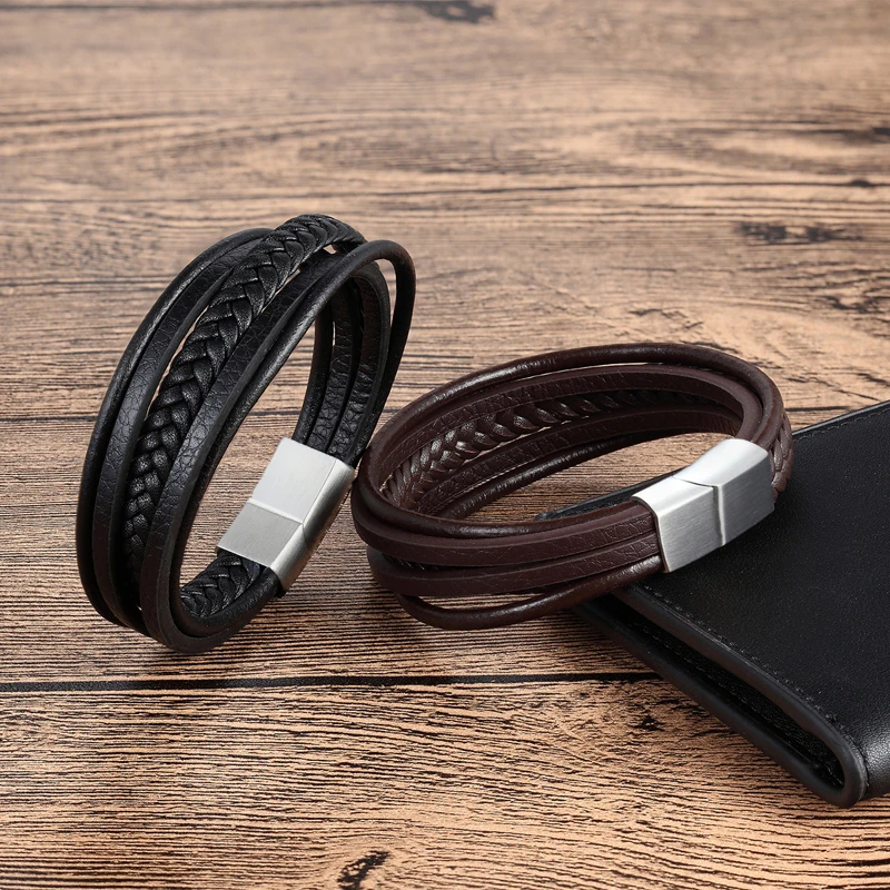 Многослойные плетеные браслеты из натуральной кожи ручной работы для мужчин, черныекоричневые браслеты из нержавеющей стали, модные ювелирные изделия, подарки для мужчин