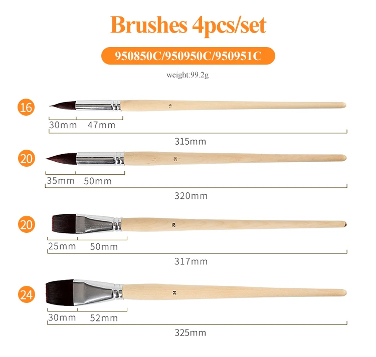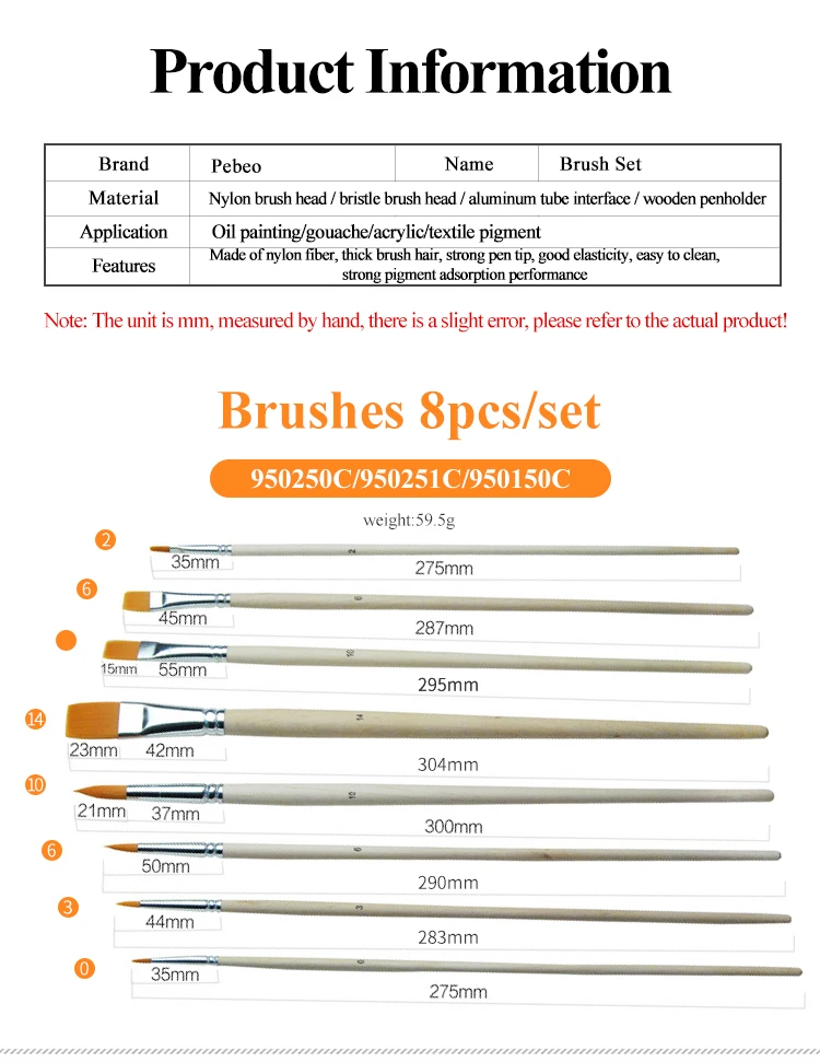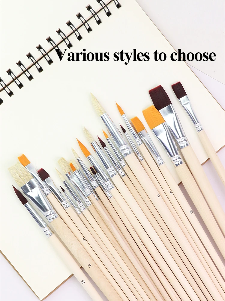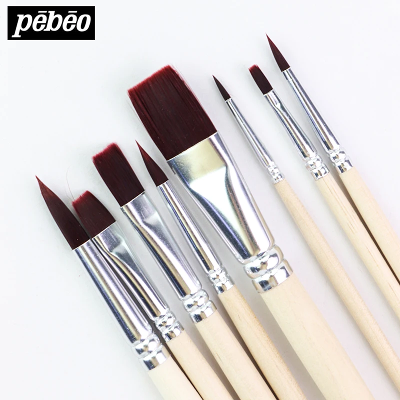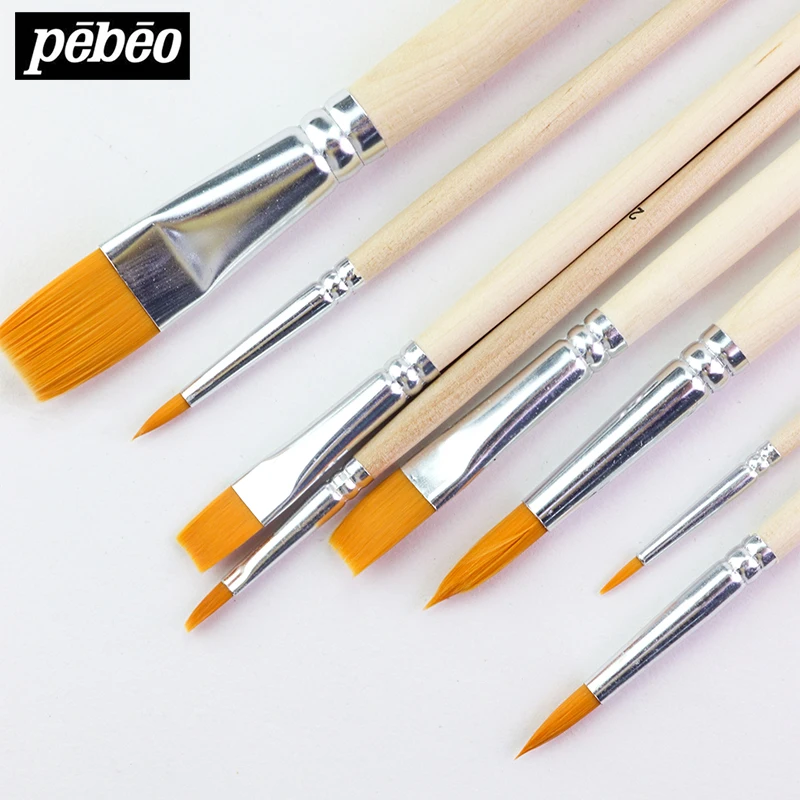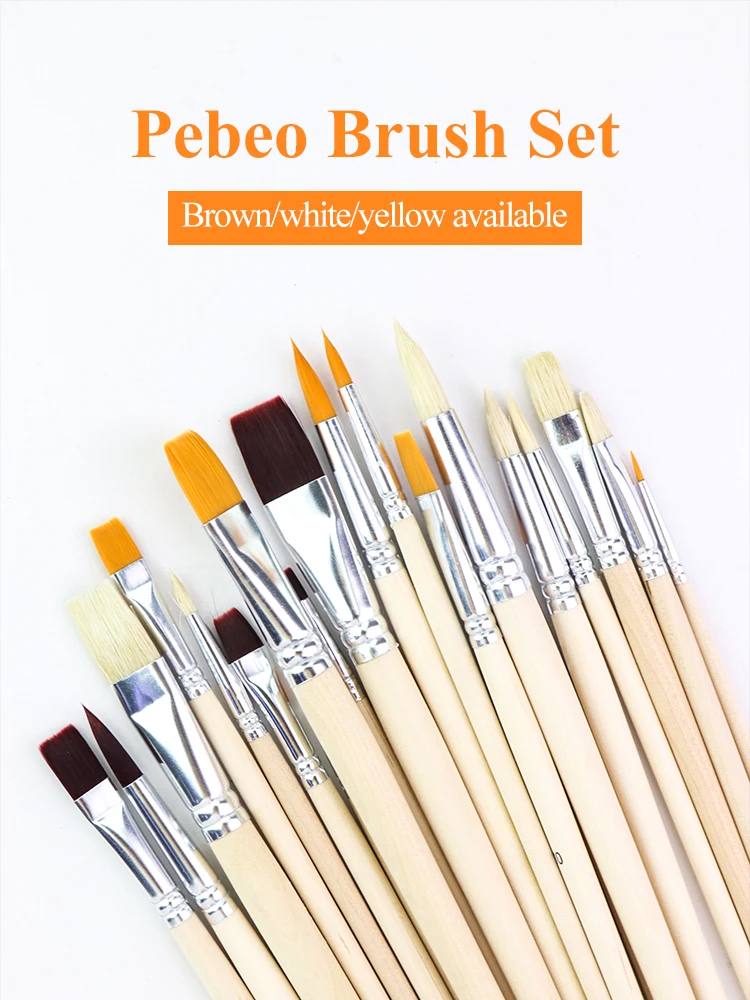 Pebeo Нейлоновая Щетка с длинной щетиной деревянного цветаГуашьакриловаякисти для живописи маслом, студенческие товары для рукоделия, 48 шт.