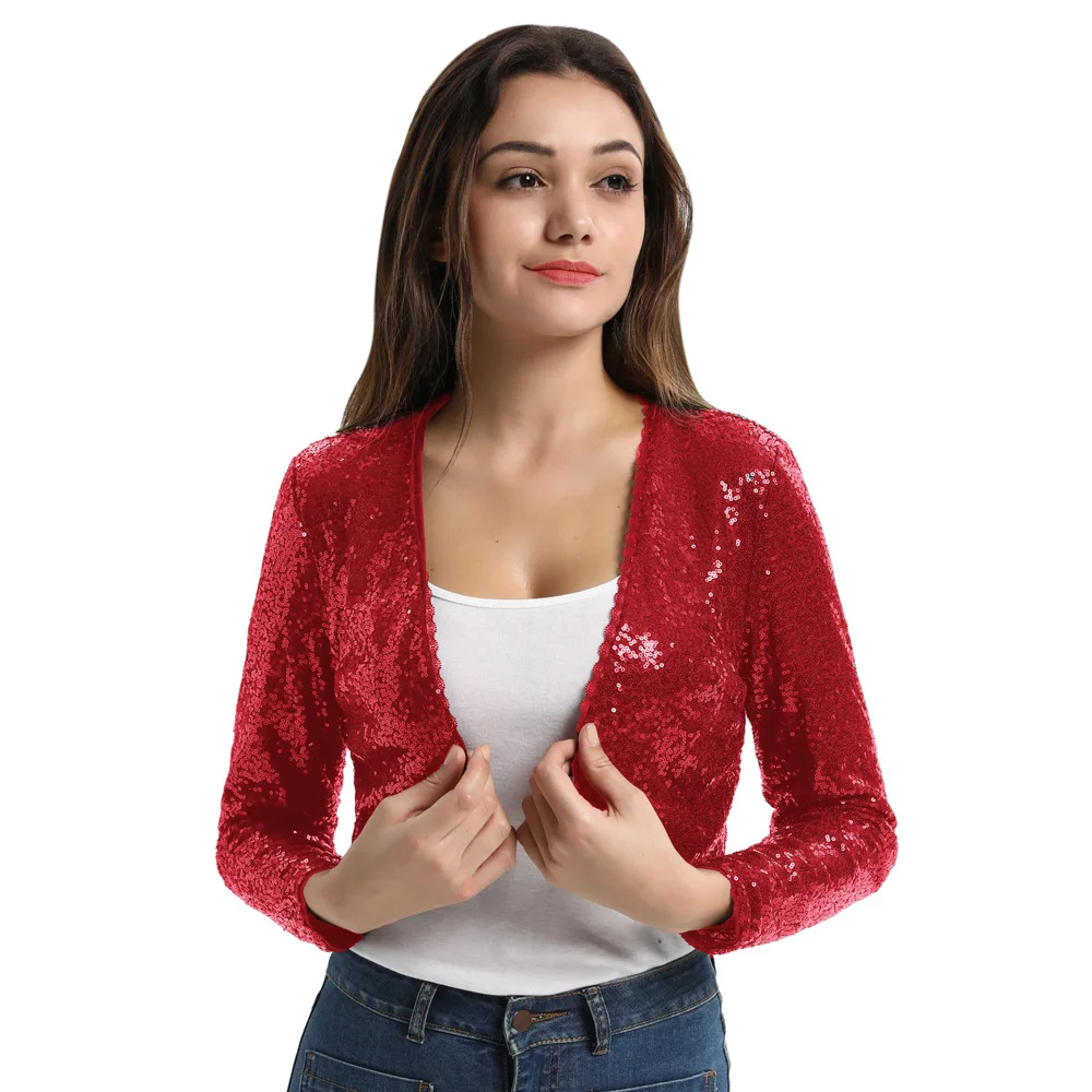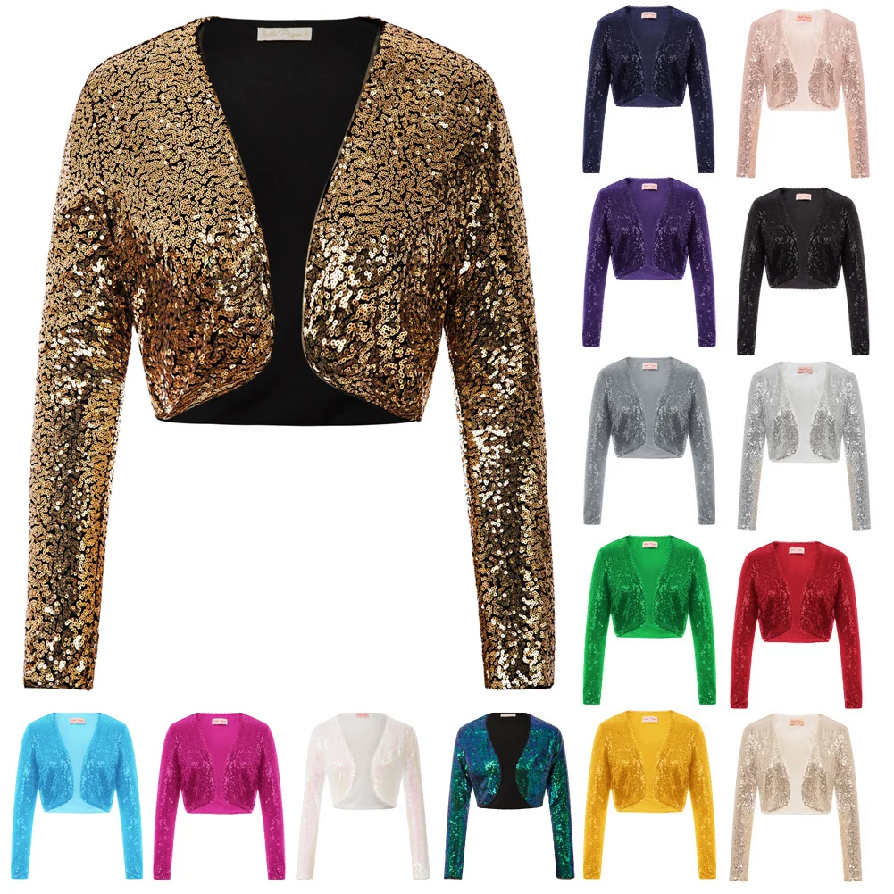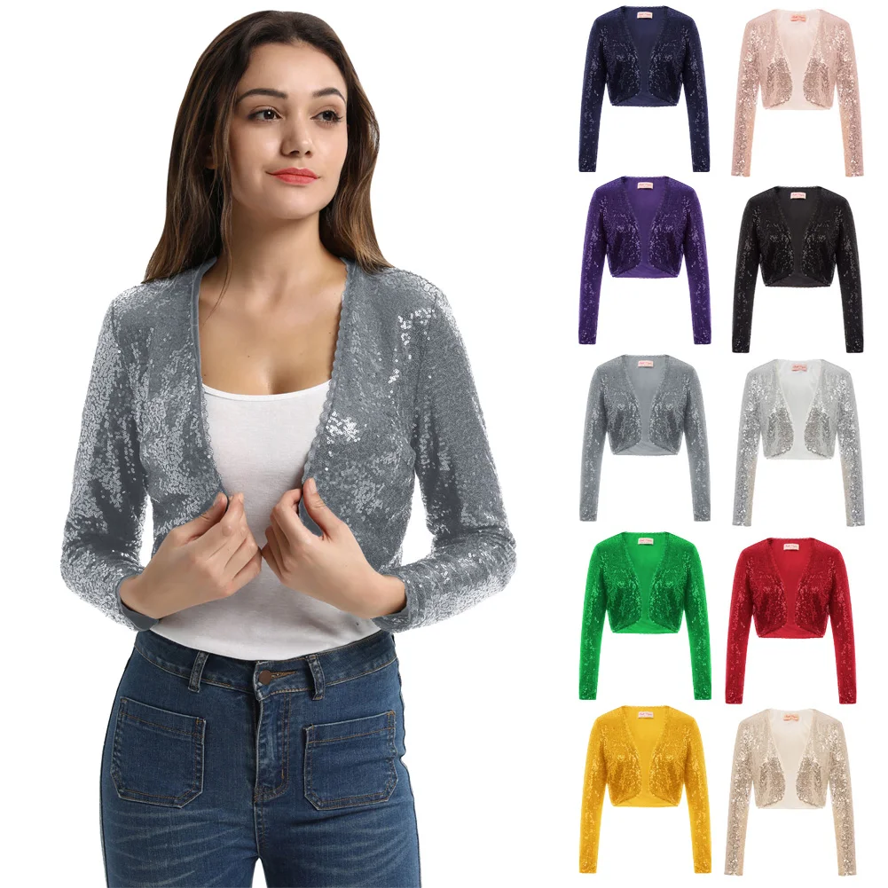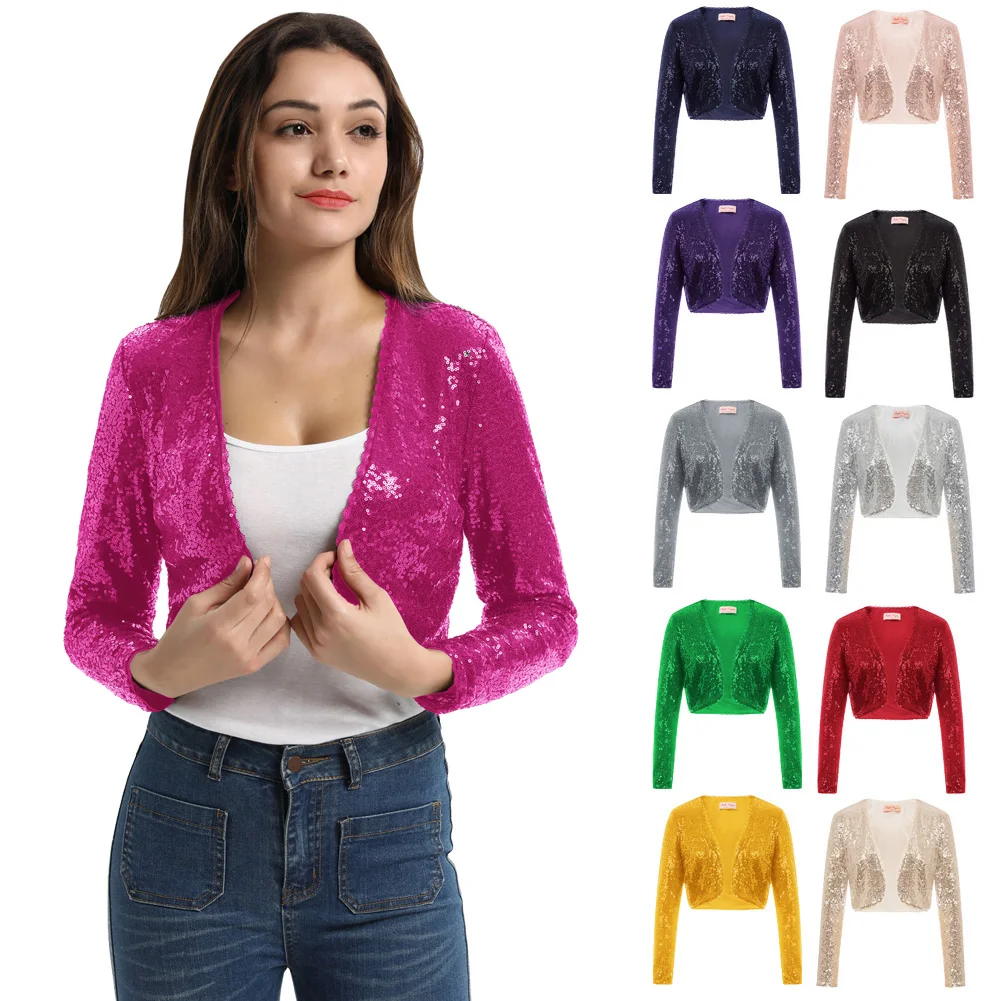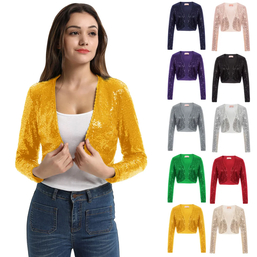 Жакет женский с блестками и длинным рукавом, весна-осень