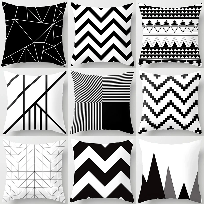 Наволочка для подушки, черная, белая, с геометрическим рисунком, декоративная подушка для дивана, полиэстер, декоративная наволочка для подушки, 40525