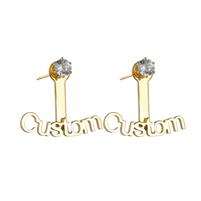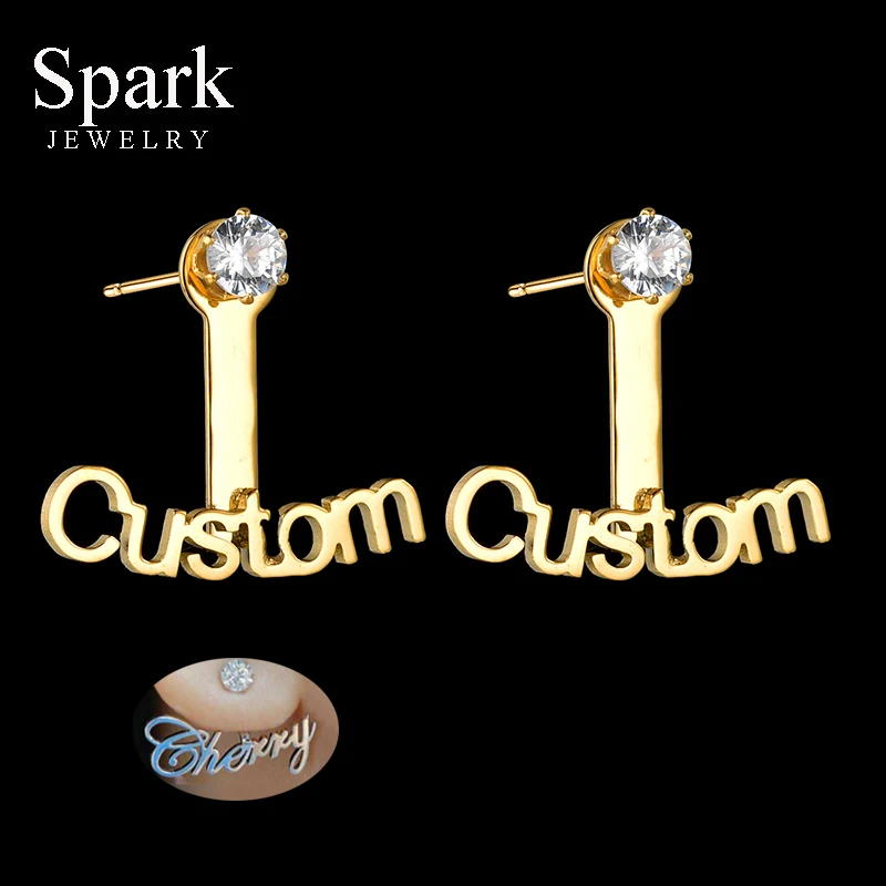 Спарк кубического циркония пользовательское имя серьги гвоздики из нержавеющей стали персонализированные курсивные именные серьги для женщин подарок на день рождения