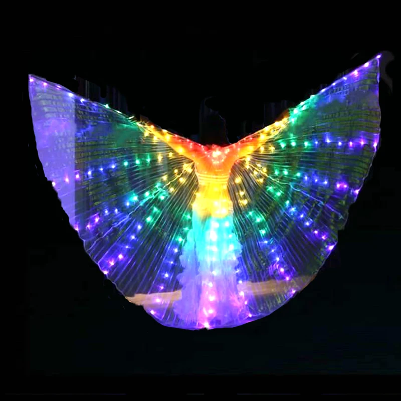 Взрослый танец живота Светодиодные Крылья огни костюм крылья светятся Хэллоуин Женщины шоу Рождество реквизит с палочками