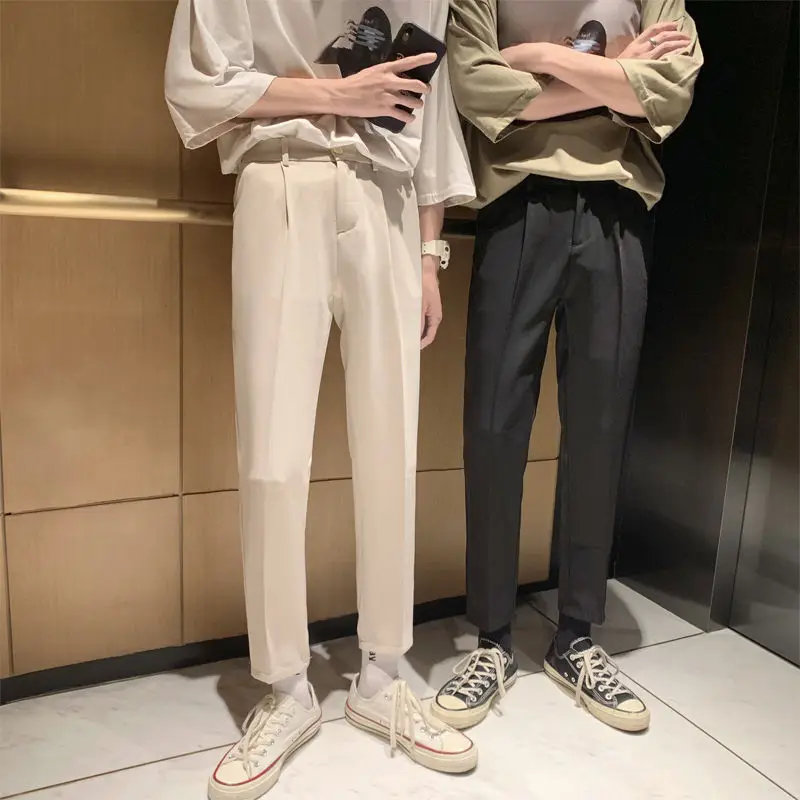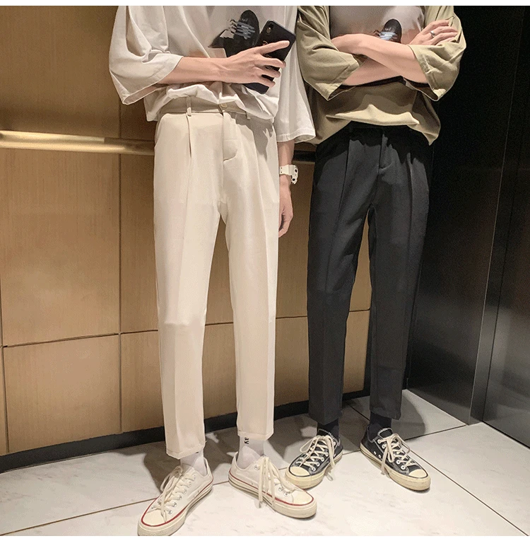 Мужские деловые повседневные брюки, деловые прямые брюки, облегающие шелковые брюки черногобежевого цвета, модель 2021, S-2XL