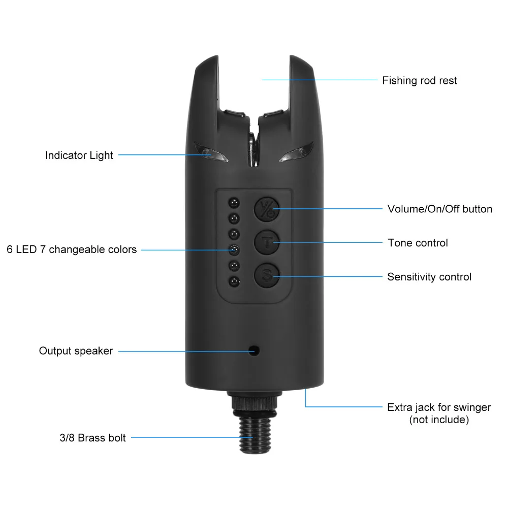 Беспроводной пульт дистанционного управления сигнализацией sense bite отправит сигнал тревоги после укуса рыбы, вы можете получить сигнал даже более 100 метров, так что вы можете уйти или отдохнуть, неся приемник, не бойтесь пропустить рыбу на крючках. Более того, Встроенный 256 переменный код достаточно, чтобы предотвратить помехи от другого рыбака, просто наслаждайтесь рыбалкой с этим оборудованием ~Особенности:-ПередатчикРегулируемая чувствительность, громкость, тон и светодиодный цвет.Нажмите V в течение 5 секунд для включения/выключения.7 сменный светодиодный будильник.Нажмите кнопку S в течение 5 секунд, чтобы изменить цвет светодиодный светильник.256 переменных кодов достаточно для предотвращения помех от другого рыбака.Светодиодный тревожный сигнал с высоким выходным динамиком.Высокая видимость светодиодный фиксация около 30 секунд.Встроенный разъем для вашего освещенный свингер 2,5 мм Сделано в Китае.Питание от аккумулятора 9 В (не входит в комплект).-ПриемникБолее 100 м дальность передачи.3/4/6 разных цветов светодиодный светильник для соответствия 3/4/6 различных сигналов тревоги.Вкл/Выкл, регулируемый громкость, кнопка вибрации.Вибрация, светодиодный сигнал тревоги с высоким выходом динамика.Светодиодный модуль памяти.Съемная антенна.Питание от аккумулятора 9 В (не входит в комплект).Портативный мягкий чехол на молнии хранит все содержимое, удобно носить с собой.Характеристики:Модель: JY-39 / JY-39-3 / JY-39-6 (опционально)Материал: АБС-пластик и медьОткрытых водоемах, которое предупреждает о месте клева Размер: 9,5*4 см/3,7 * 1.5inРазмер приемника: 7,5*4 см/2,9 * 1.5inНа молнии чехол Размер: 33*22*6 см/12,9*8,6 * 2.3inПосылка: Approx.609.7-763,5 г/1,3-1.7lbПосылка: в соответствии с вашим выбором, комплект A/set B/set C