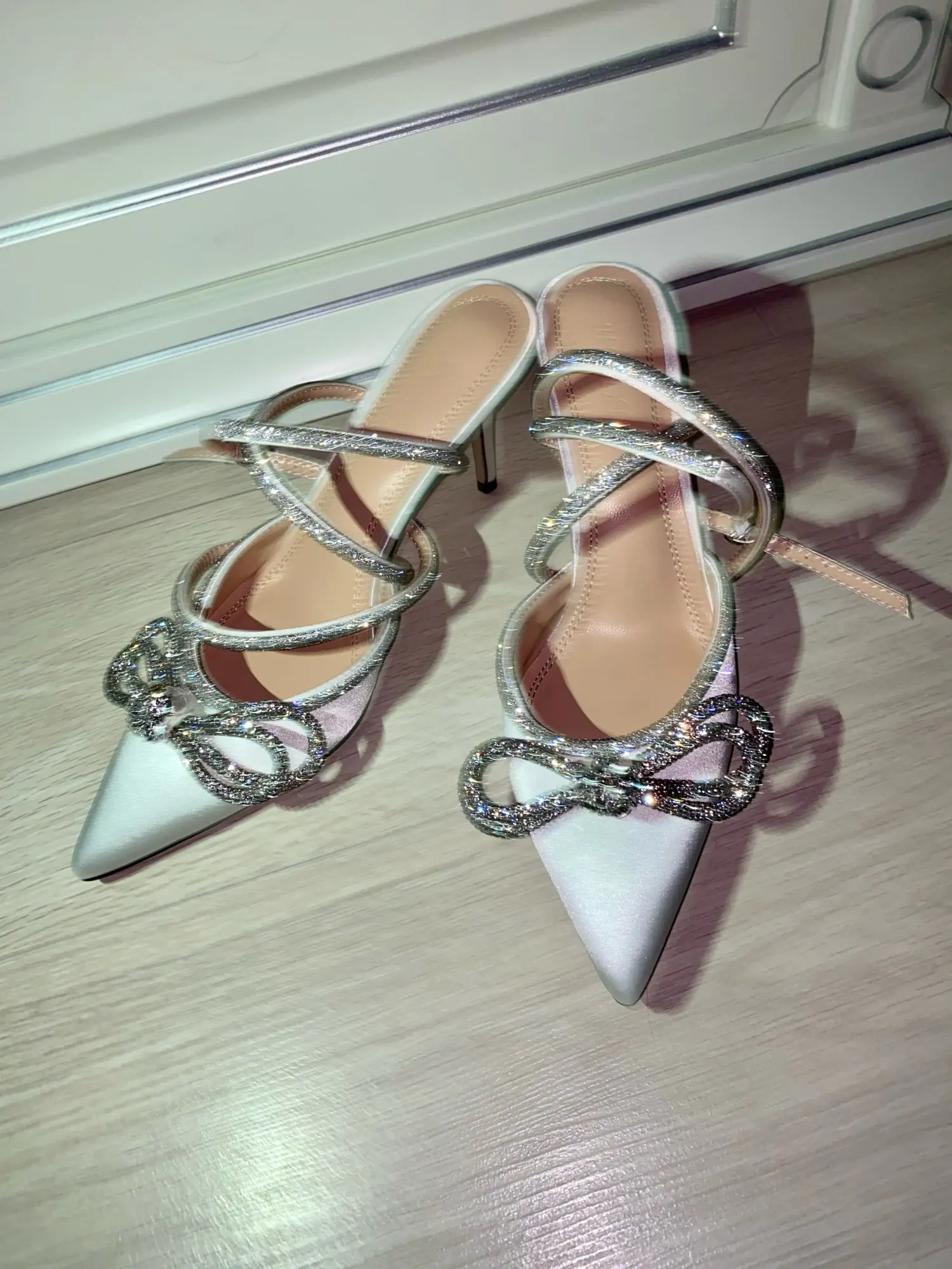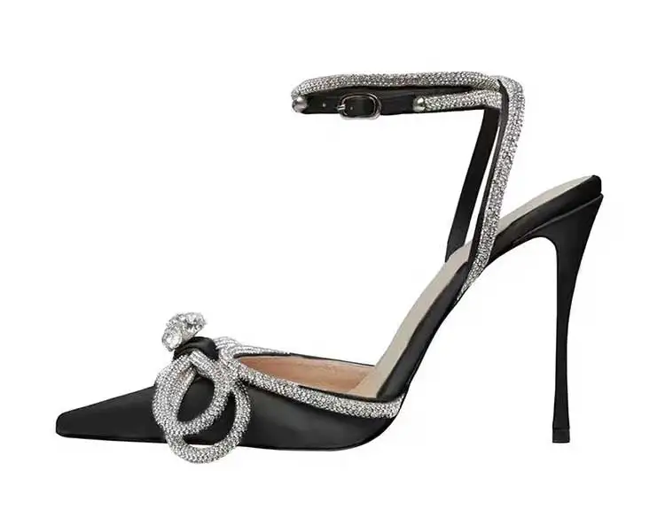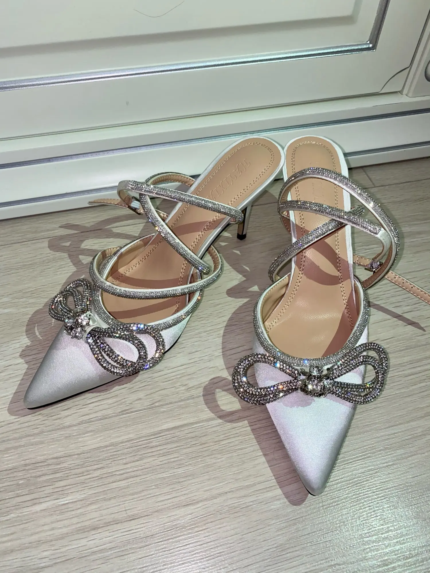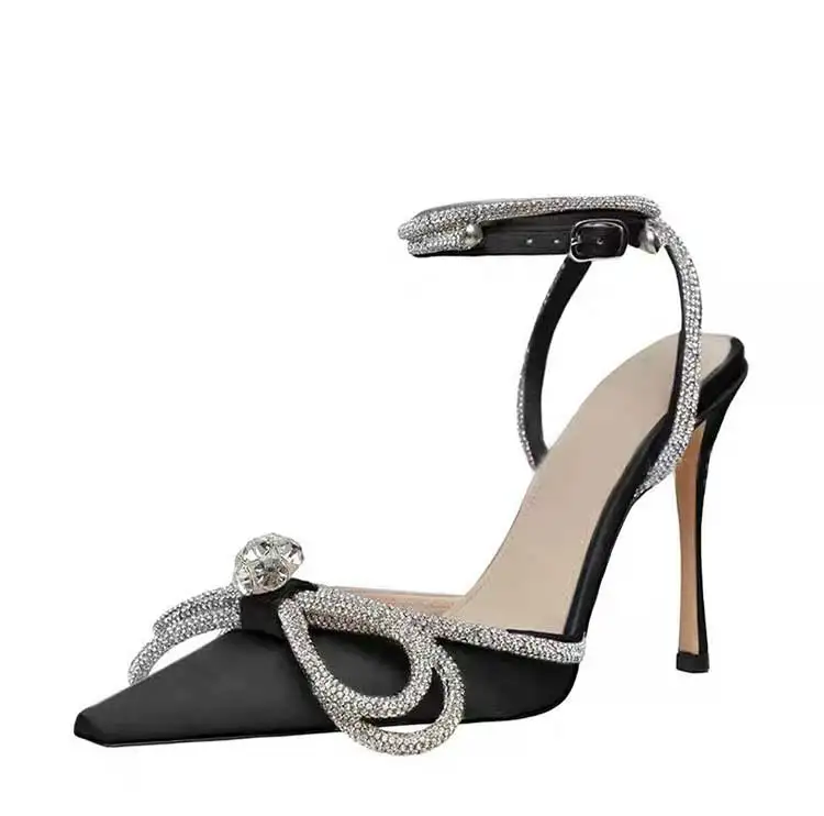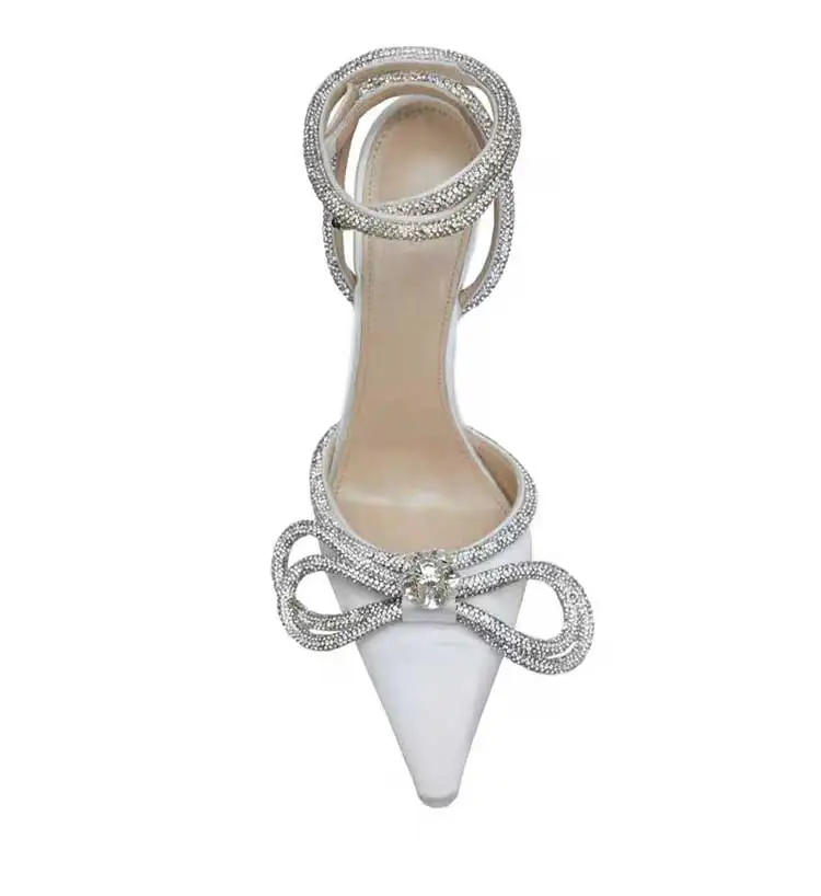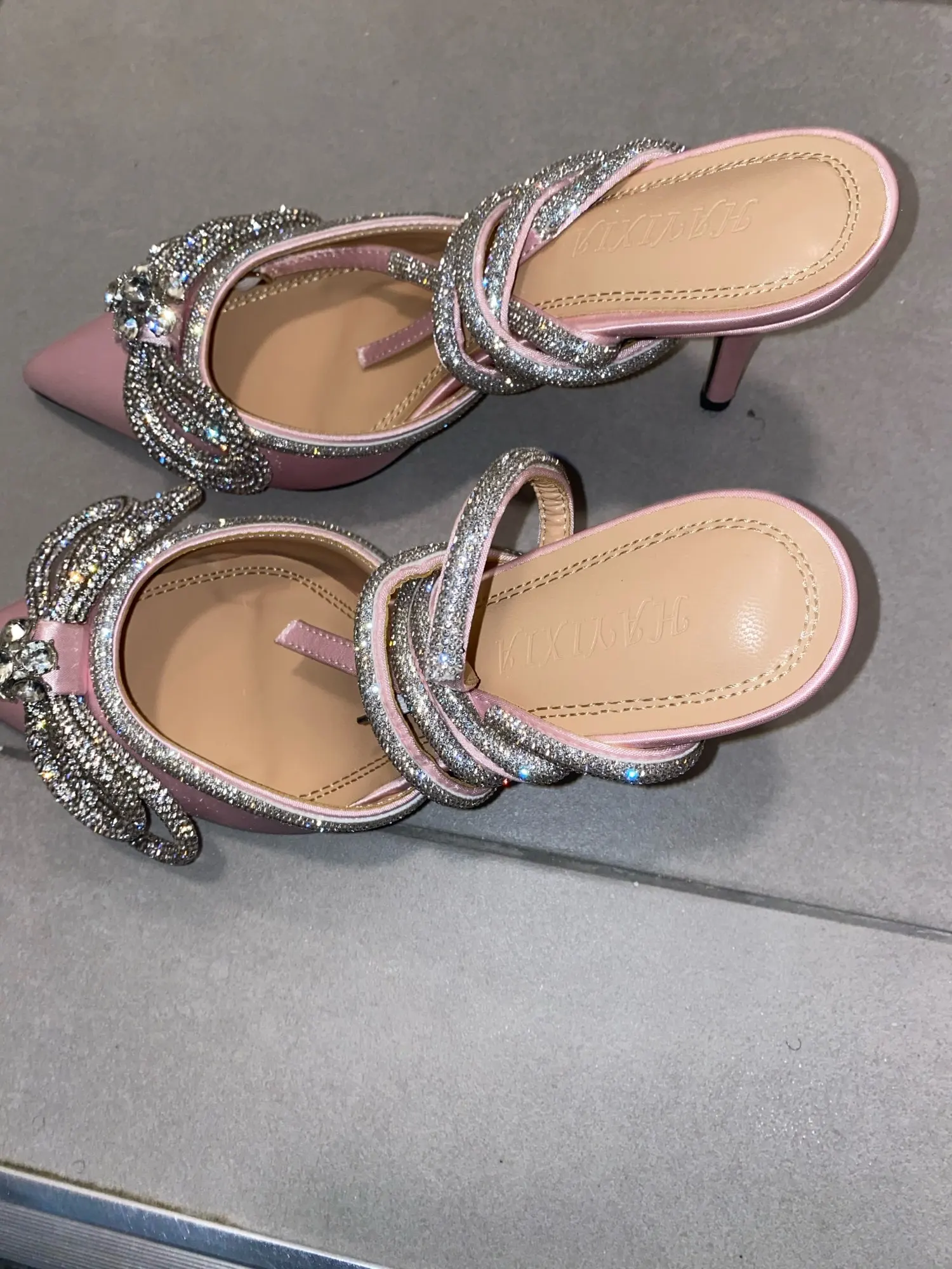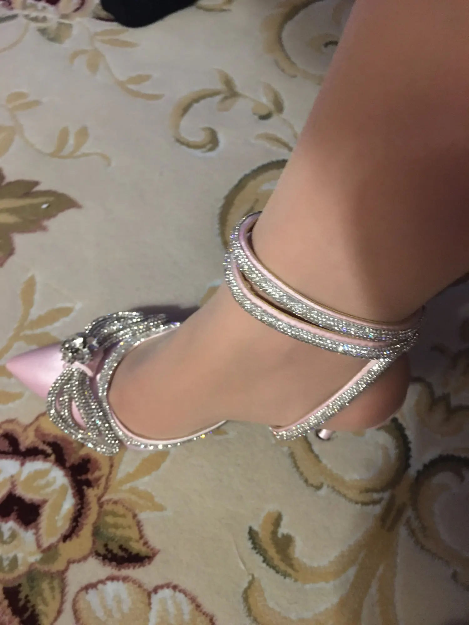 Женские сандалии стразы с бантом-бабочкой, босоножки на тонком каблуке с кристаллами, сказочный розовый бант на высоком каблуке со стразами, новинка 2021