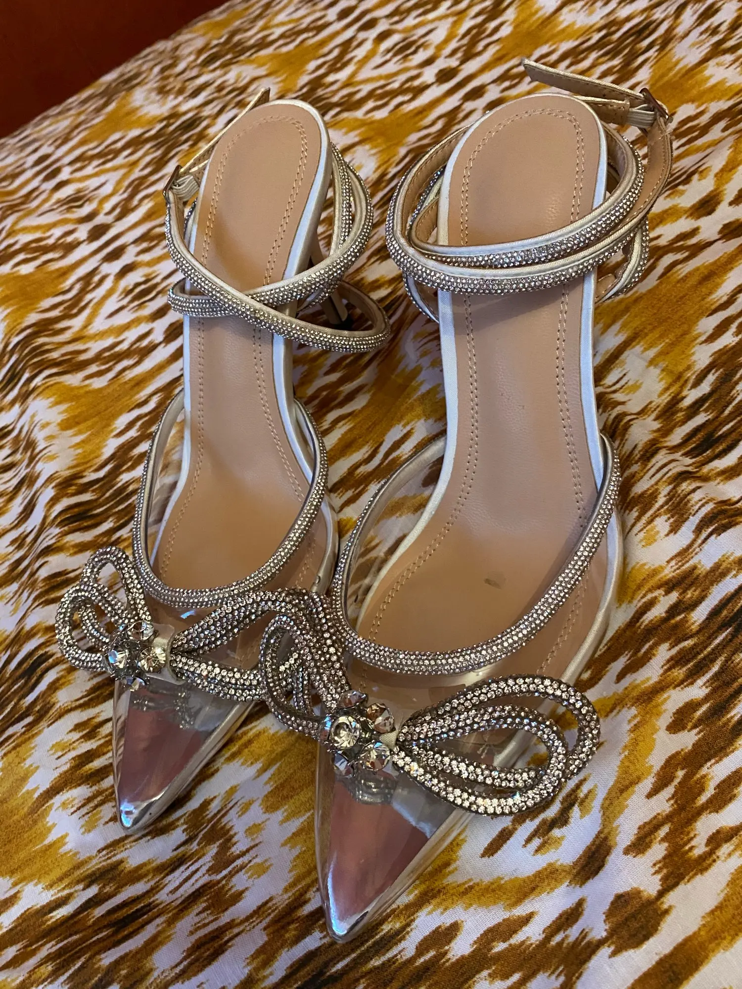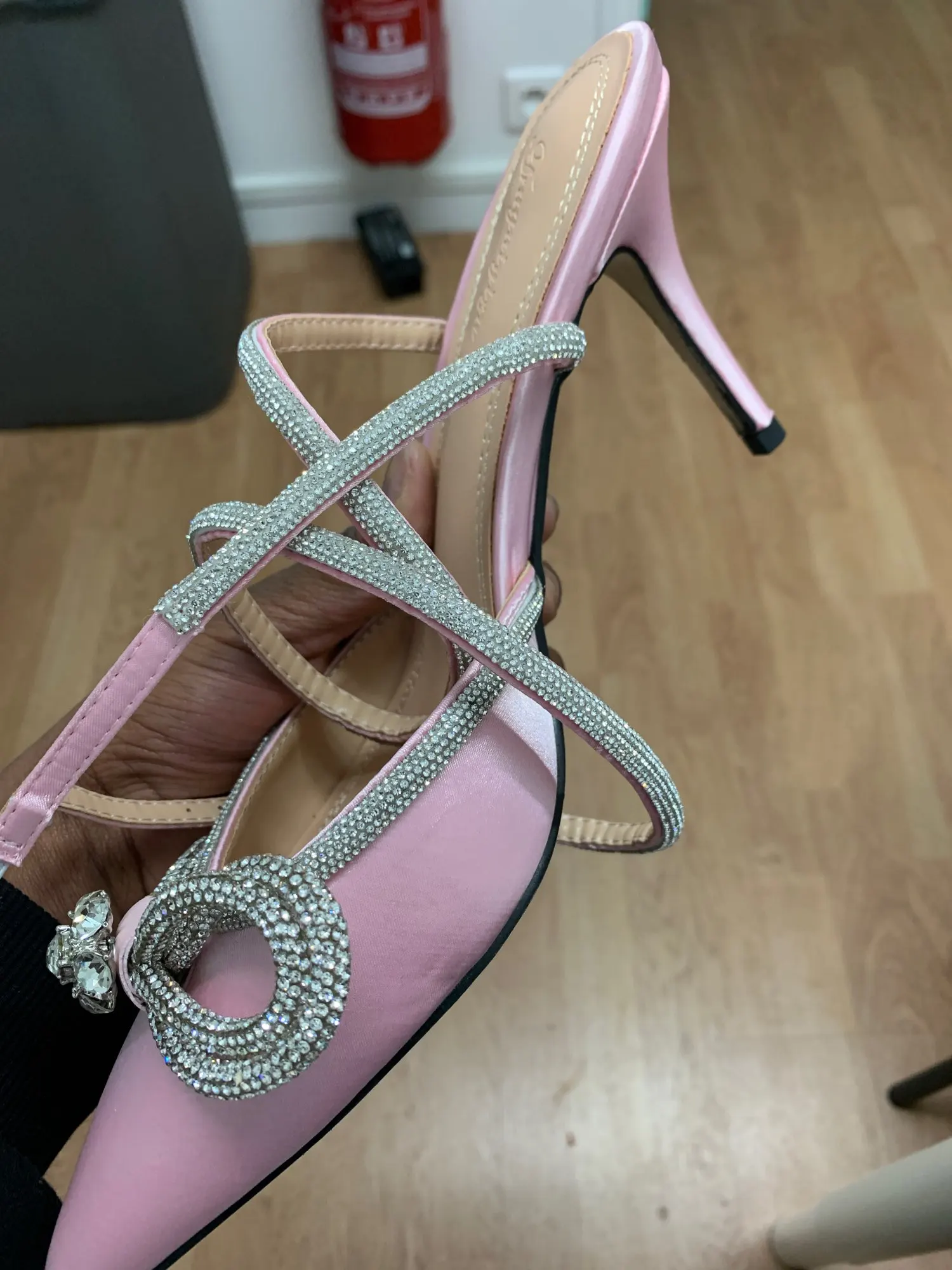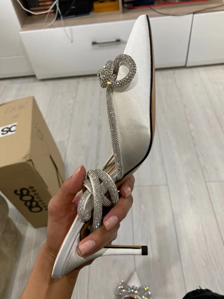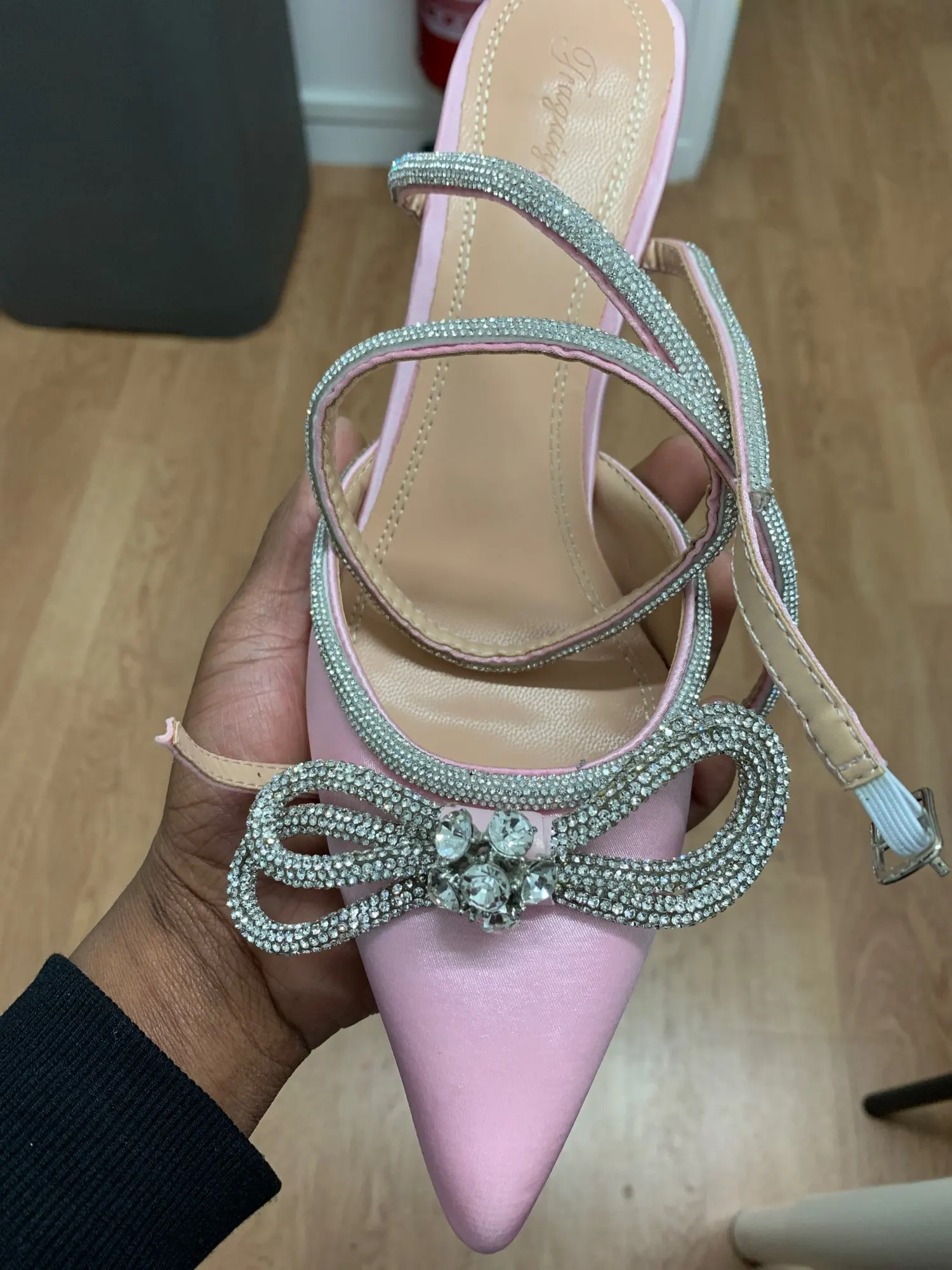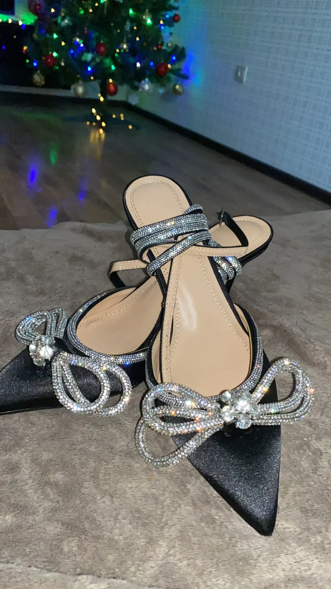 Женские сандалии стразы с бантом-бабочкой, босоножки на тонком каблуке с кристаллами, сказочный розовый бант на высоком каблуке со стразами, новинка 2021