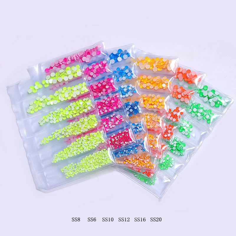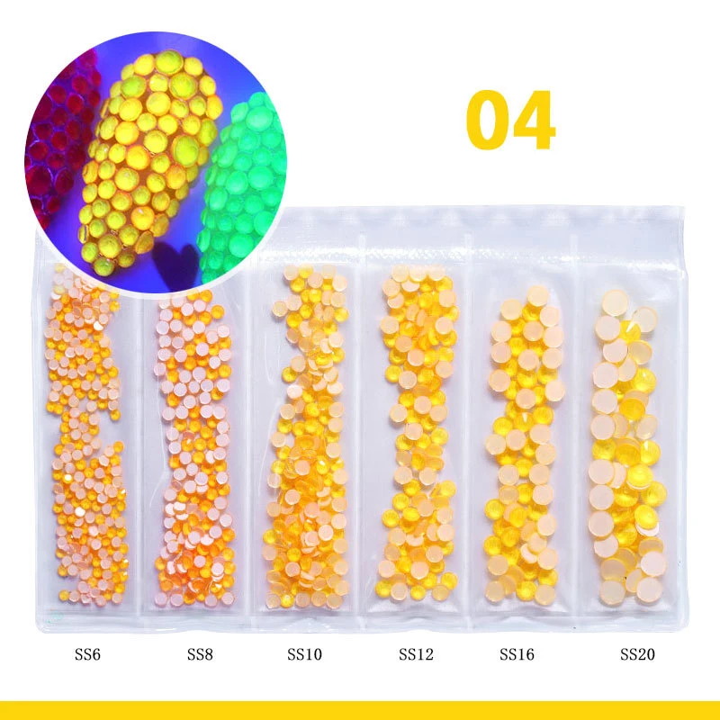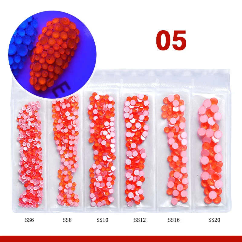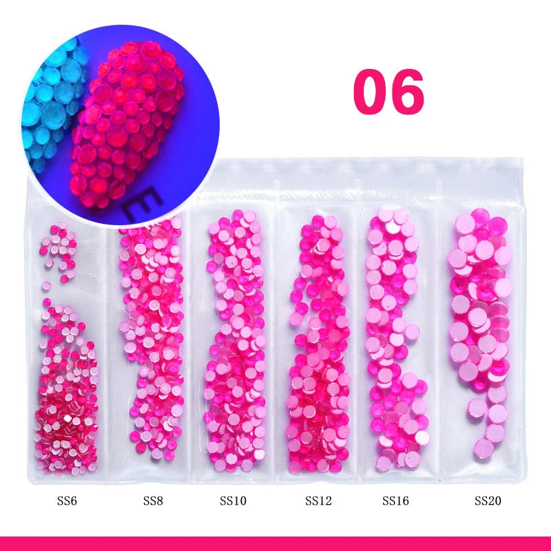 6 ячеек флуоресцентные Стразы неоновый Декор драгоценные камни ноготь маникюрный-разные размеры искусство 3D Алмазные кристаллы ногти DIY украшения