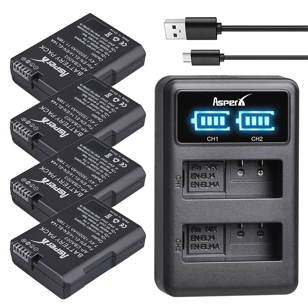 4X 1500 мАч EN-EL14 EN-EL14A ENEL14 EL14 для Nikon DF D5300 D5200 D5100 D3300 D3200 D3100 P7100 батарея + светодиодный двойной USB зарядное устройство